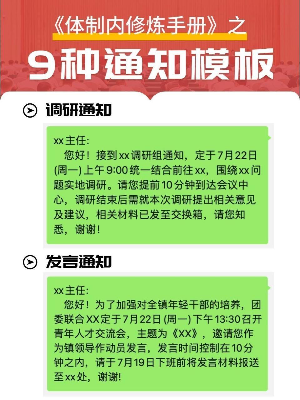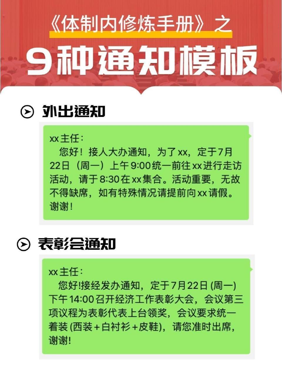 体制内必备的20种通知模板!