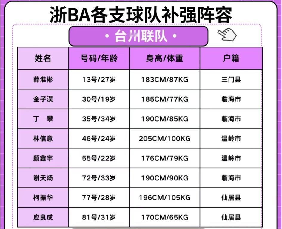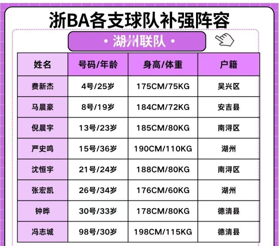 浙ba增补名单最新出炉,宁波、台州、湖州三支联队各增补了8位球员,列22支球队之