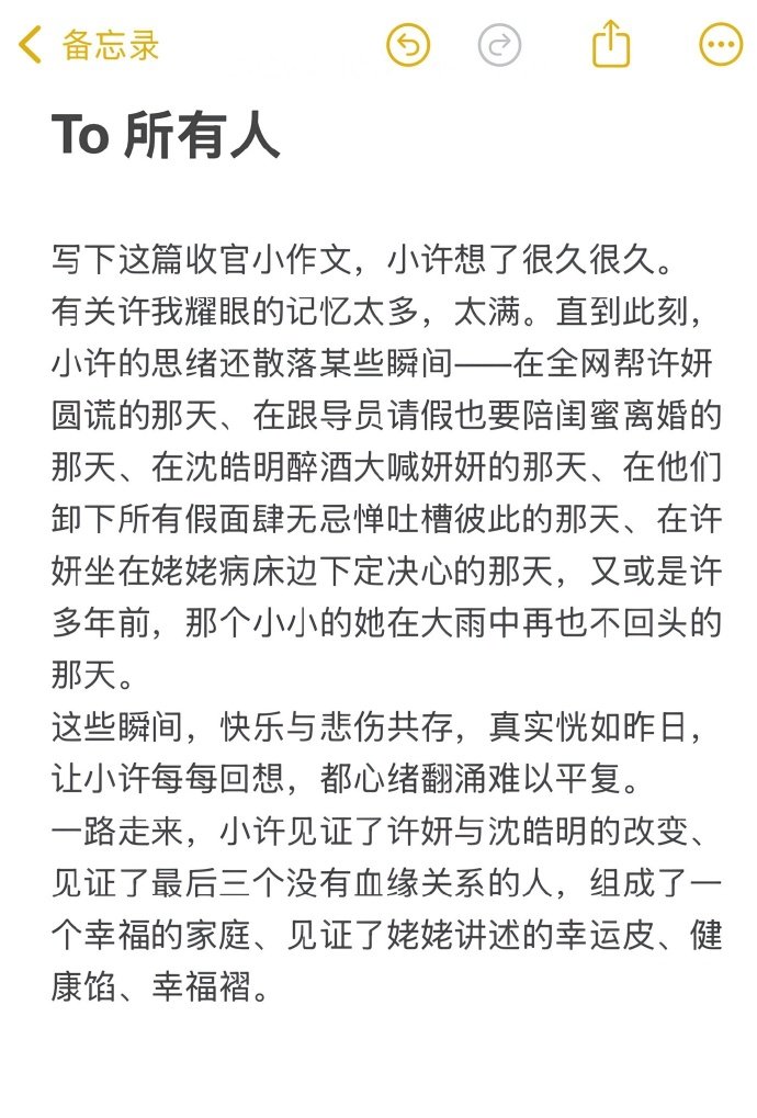 许我耀眼官方写的收官小作文,许我耀眼收官千字文,咱就说满满的感动啊,小许你值得掌声啊~