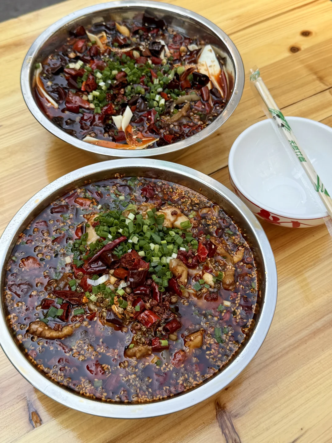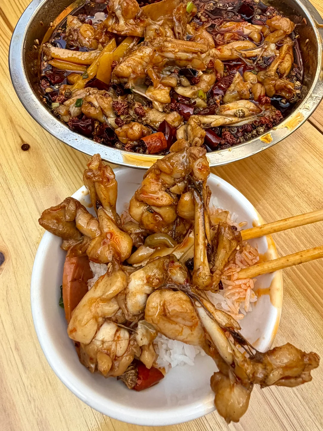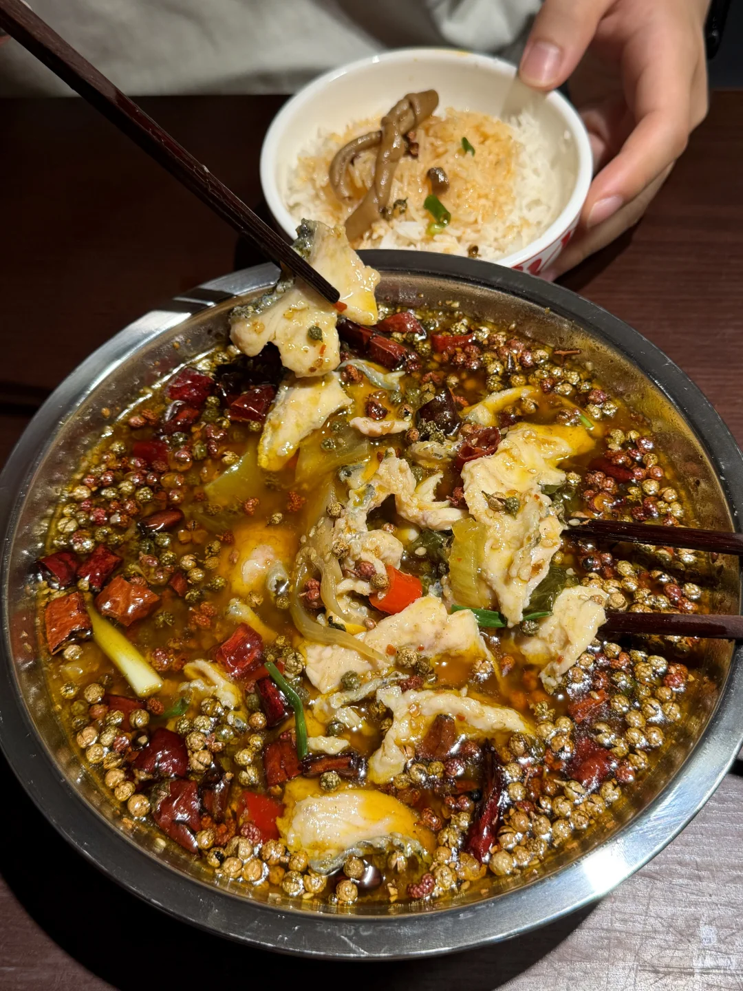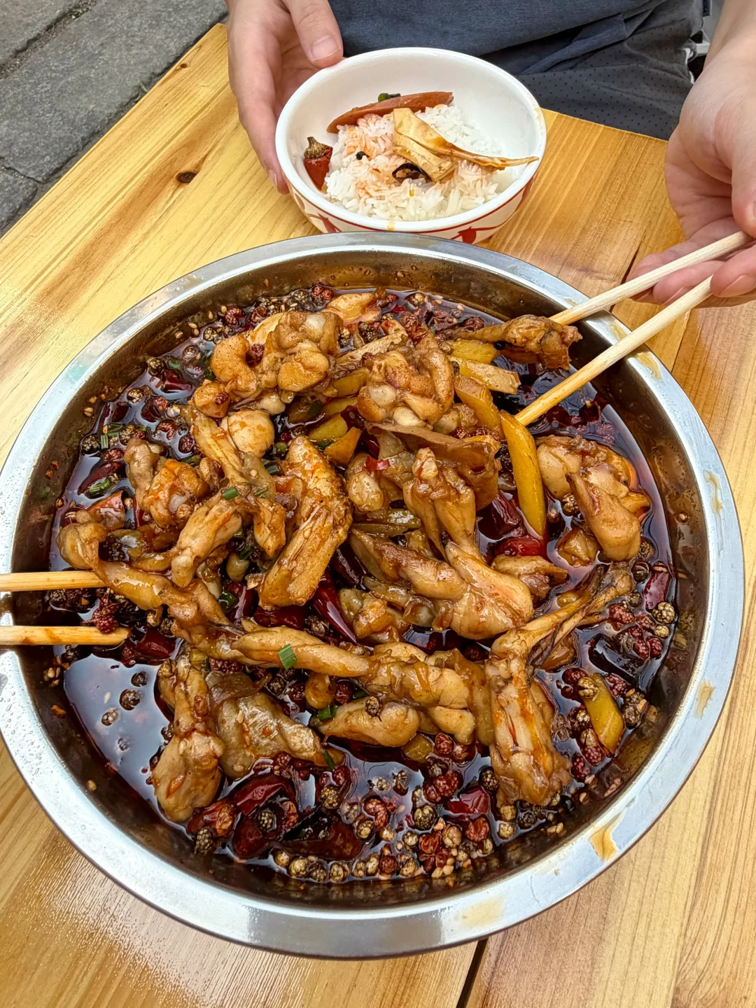我们点了四个菜份量足够三个人吃!辣子鸡又焦又香一口直登我心中的top1。。耙鸡爪、花椒鱼、干煸土豆片味道都很权威!