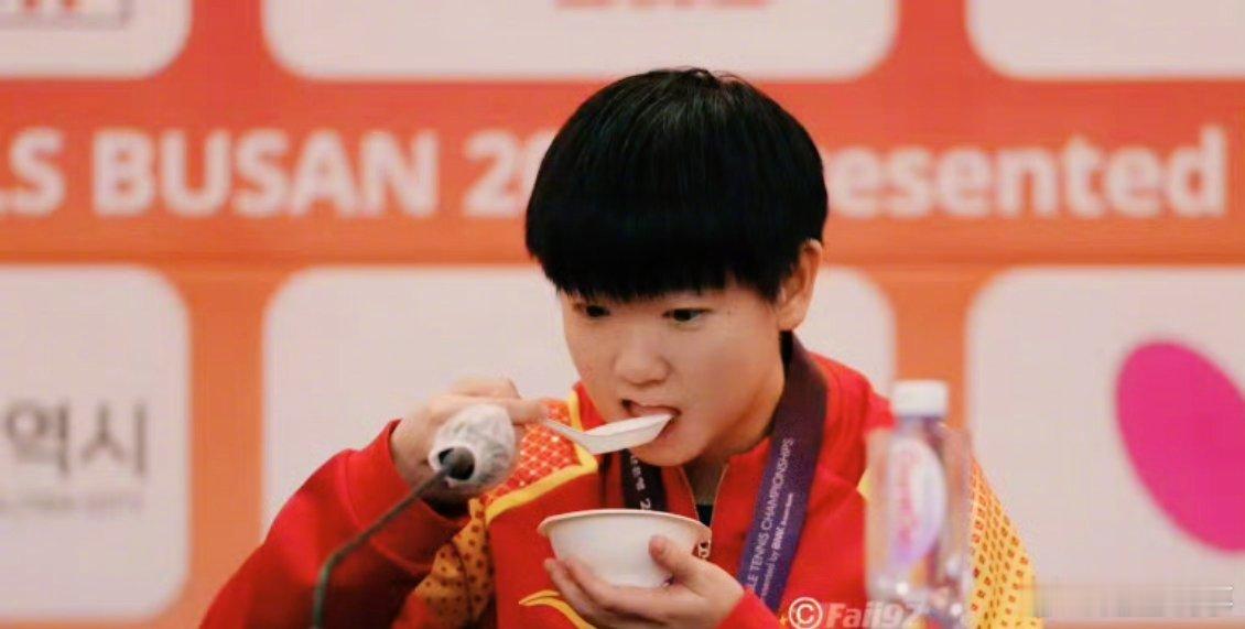 孙颖莎吃饭都有冠军相 孙颖莎吃东西的模样太有感染力啦!每一口都吃得超香,仿佛能把食物的美味无限放大。隔着屏幕都能感受到那份对美食的热爱,这饭张力直接拉满,不愧是纯真又可爱的小吃货莎莎!