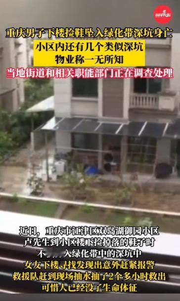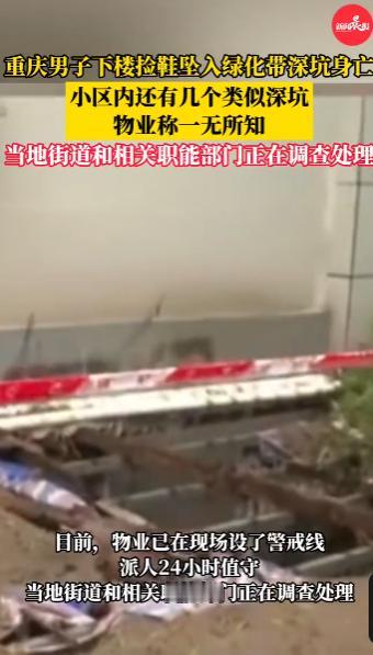 2025年10月,重庆,一男子下楼捡掉落的鞋子时,没注意到绿化带里面的积水深坑,他一脚踩空后不幸坠坑身亡,经过排查,发现小区内竟然有多处这样的深坑!网友:为了捡双鞋丢了性命,痛心! 在到草木繁茂的地方时,一定要仔细看好脚下的路,有些坑洞被树叶或者塑料布掩盖住,不慎踩上去很有可能酿成惨剧。 一男子在阳台晾晒的鞋子不小心掉到了楼下,他往下看了一眼,掉落位置大约在一片绿化带附近,男子赶忙下楼去寻找。 绿化带有一处隐蔽的深坑,坑口有钢筋支撑,上面还覆盖着布条,再加上周围杂草茂盛,不仔细看根本看不出来,男子在找鞋的过程中不慎踩空,跌落到深坑之内。 女友发现男子迟迟未归也联系不上,害怕出什么意外,赶忙报了警,救援队火速赶到现场,锁定了男子跌落的位置,此时他们才发现深坑内还有不少积水,抽了整整2小时才将深坑内的水抽干。 男子被救上来时已经没有了生命体征,一条鲜活的生命就这样逝去了,出了这档子事,小区内部赶紧排查,竟然又发现了多处深坑! 不少网友觉得男子为了捡双鞋就丢了命,这事很荒谬,说到底还是物业管理的问题,尽管物业表示子在接管小区时对大坑并不知情,但这撇不清责任! 信息来源:《重庆男子下楼捡鞋坠绿化带深坑身亡,小区内还有几个类似深坑,相关部门正调查处理》九派新闻