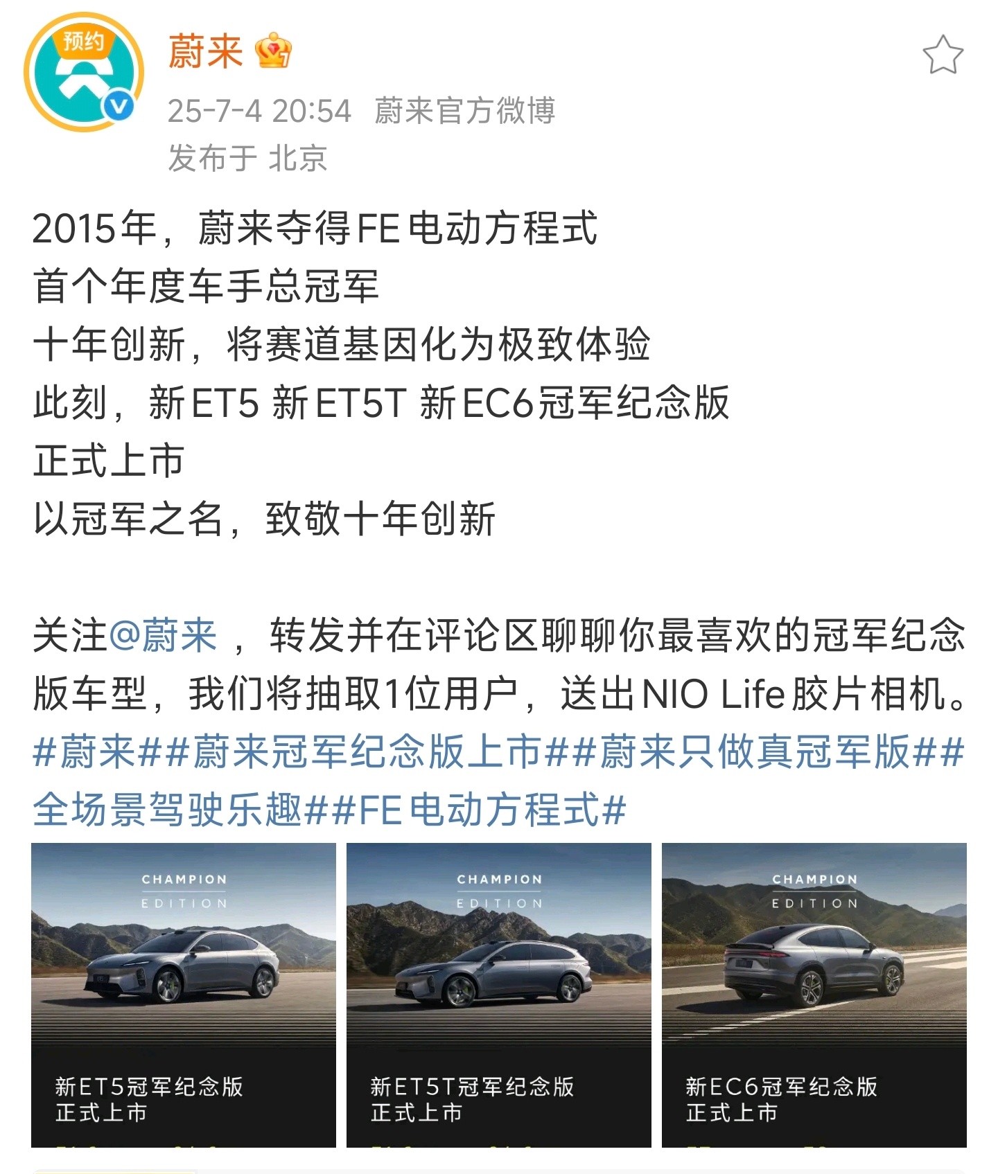 印象中,以前蔚来很少出这样的特别版车型,最近变多了,比如还有“冠军纪念版”和“地平线特别版”。这是不是一种维持关注度的方式?[思考][思考]