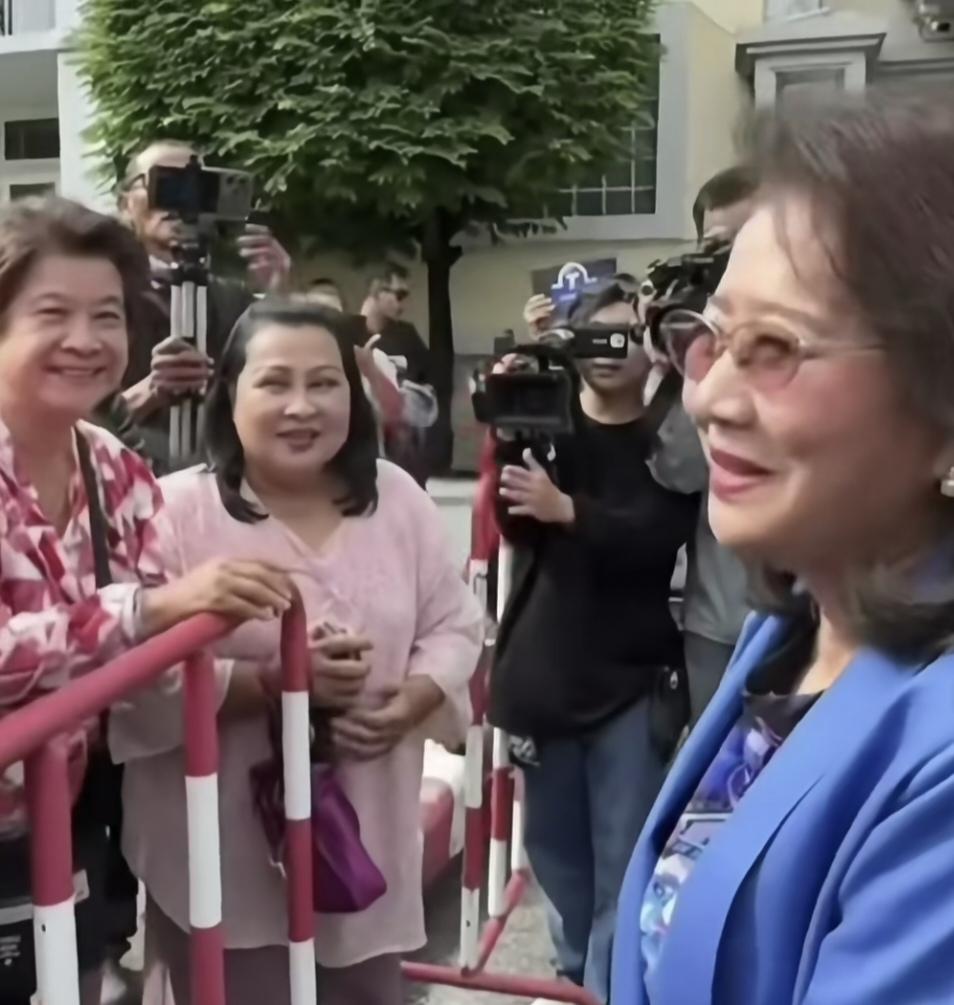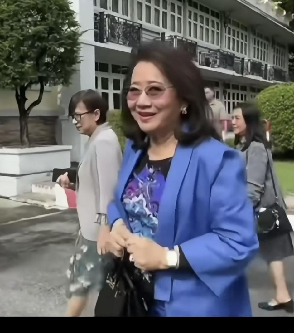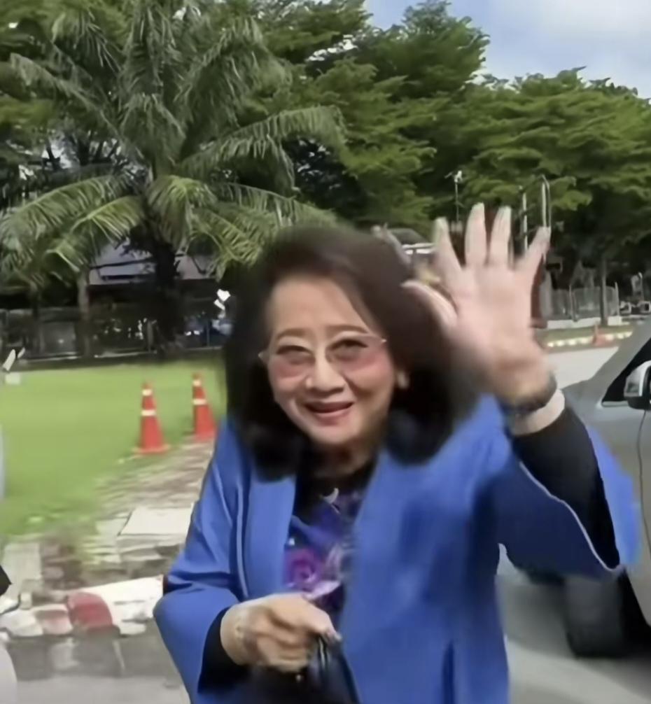 今天是星期四,佩通坦的母亲朴乍曼来探望泰国前总理他信。真没想到,佩通坦的母亲这气质相当不错哇,她比他信小七岁,也就是她都69岁了,这状态挺好。齐肩波浪卷发,质感很好的天蓝色套服,优雅有余,时尚领先。 作为前妻,她依然爱西那瓦家族,每当这个家族有重大事情发生,她都会第一时间出现。这是她第二次探望他信。 来时,她和来自四色菊府的红衫军打招呼。探视完,她向媒体介绍他信情况:他信看起来仍然很好,但是身体略有不适。 女儿女婿探望便罢了,前妻也隔三差五探望。他信真的挺有福气的!
