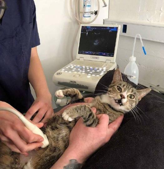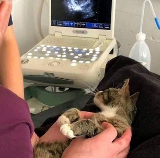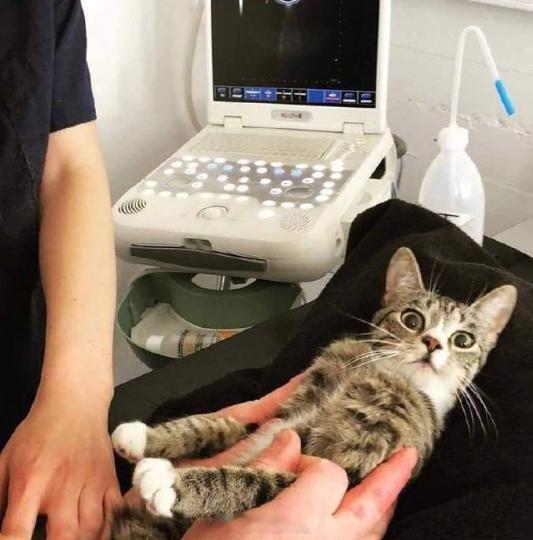 一只怀孕的猫被带去做超声波检查经历的四个阶段:拒绝、愤怒、好奇、妥协[哈哈]