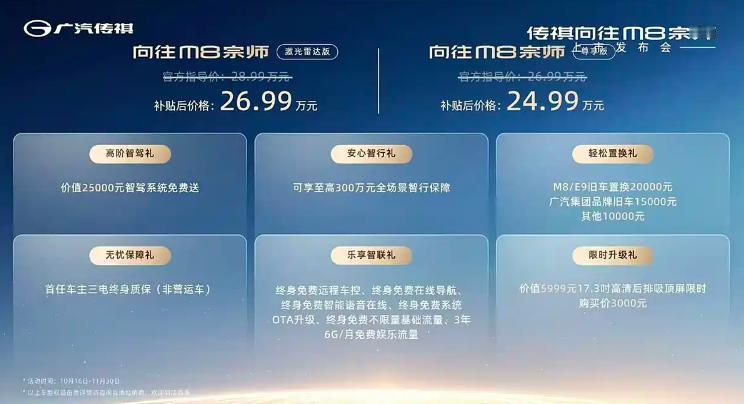 懂车之道讯懂车之道快讯,10月16日,广汽传祺官向往M8宗师版正式发布上市,共推