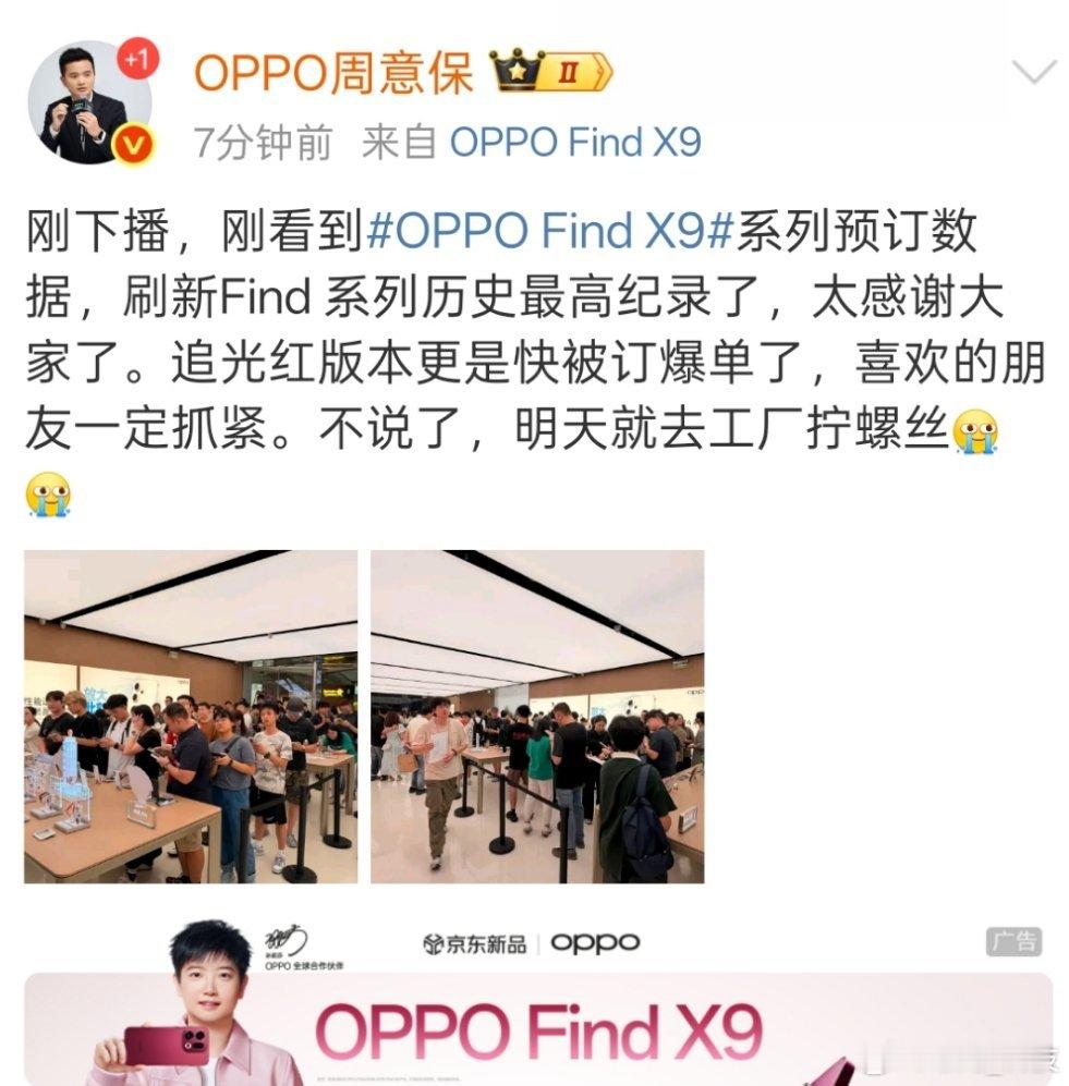 OPPO Find X9订单很火爆,保哥要去拧螺丝了。加油!