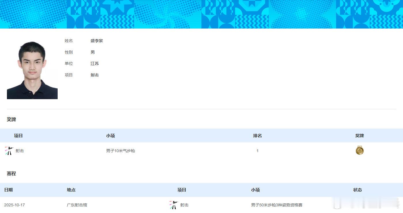 奥运冠军盛李豪再度出战,冲击本届全运会个人第二金,此前他斩获男子10米气步枪金牌