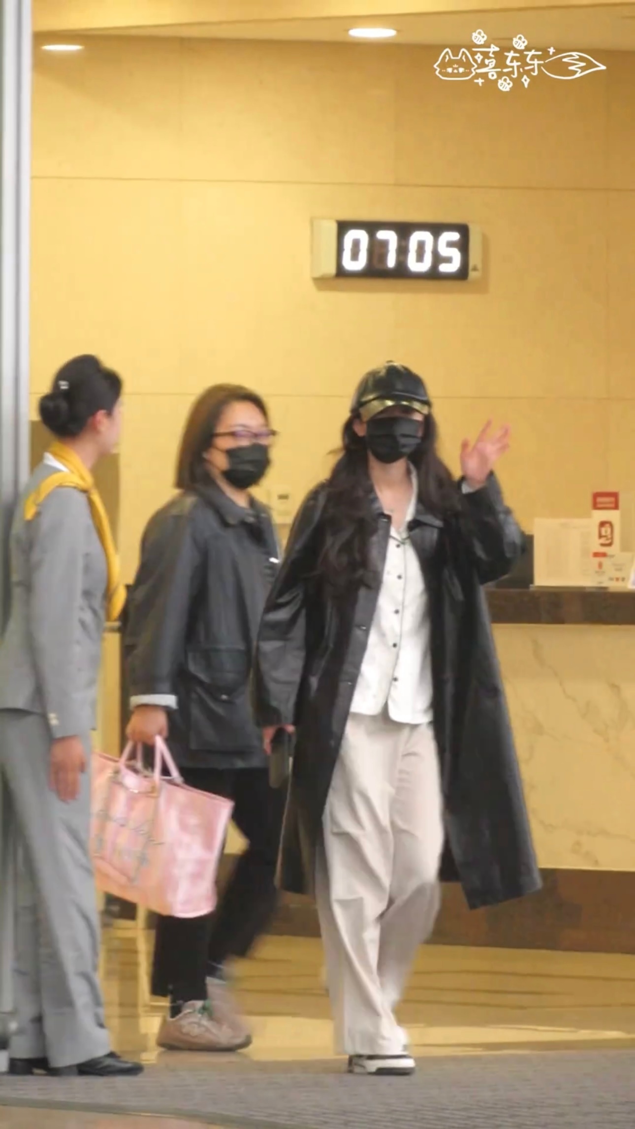 杨幂睡衣外搭黑大衣look杨幂归国路透