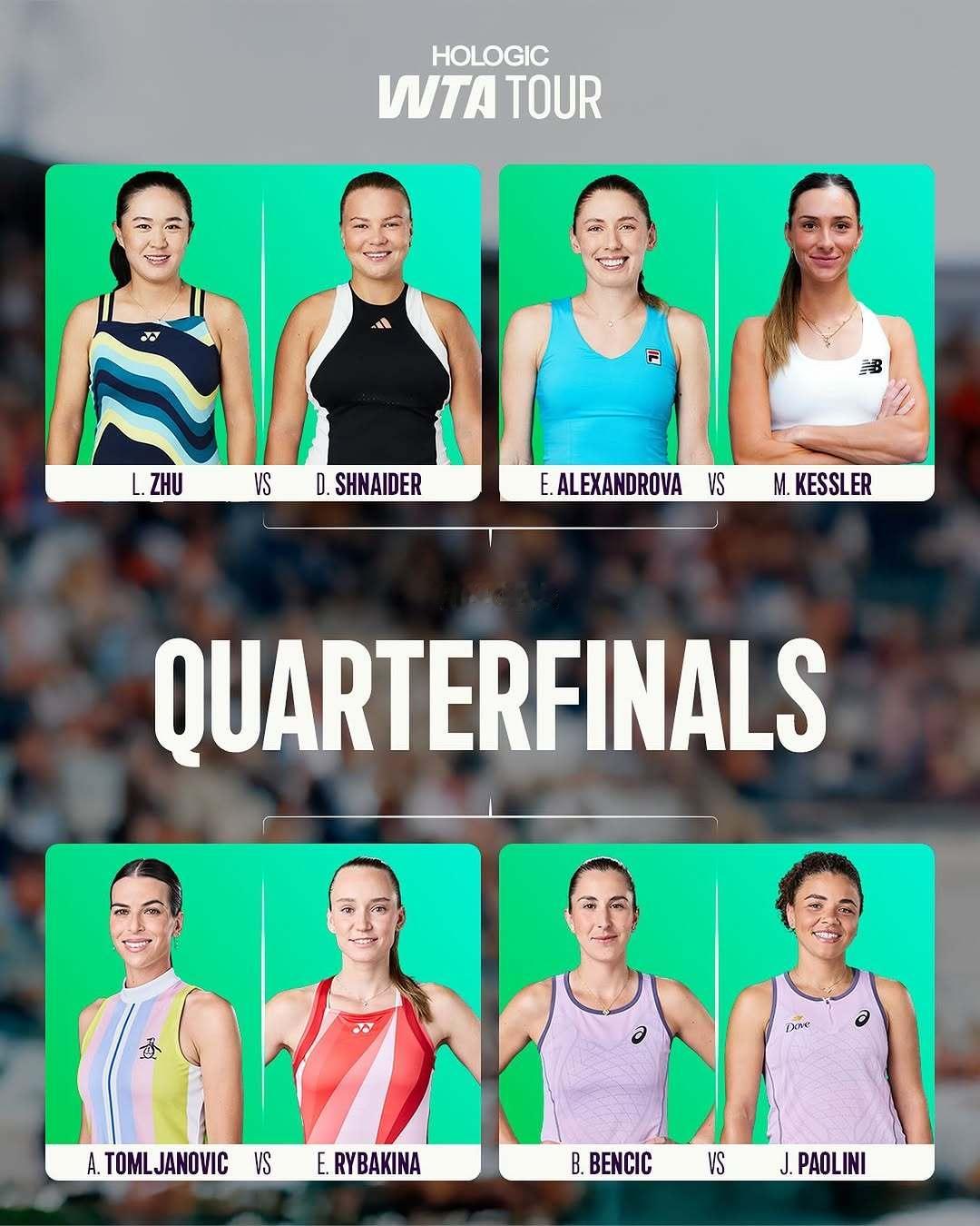 朱琳冲击四强,鲍里妮对阵本西奇,莱巴金娜、亚历山德洛娃等球员都将亮相。