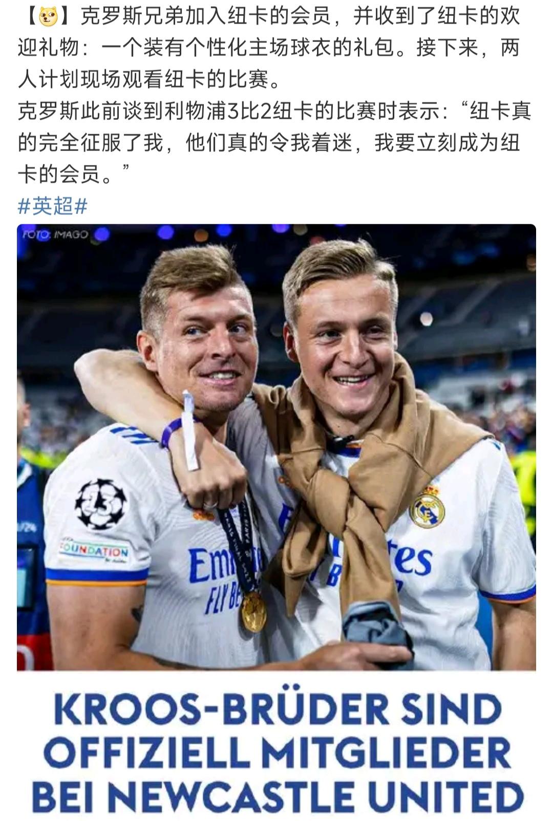 这件事情真有意思,克罗斯看了一场利物浦3比2纽卡斯尔的比赛,说自己爱上纽卡,要成