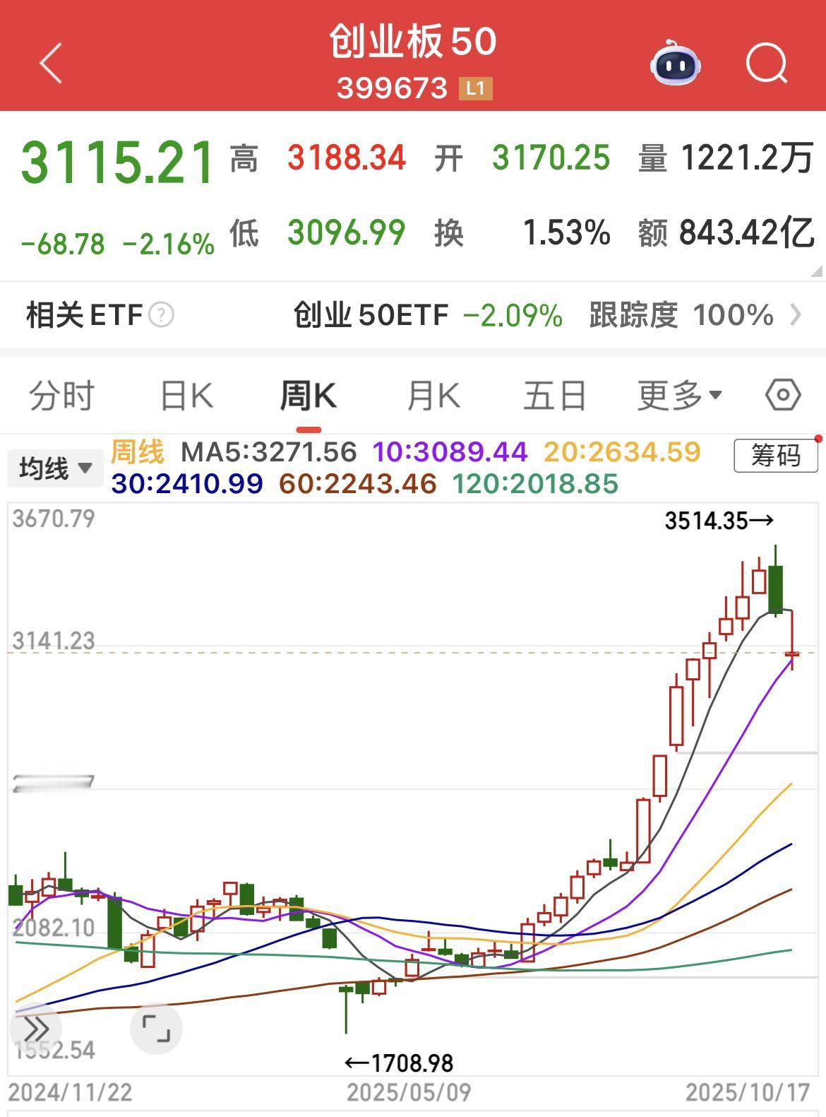 创业板50、科创板50均跌超2%! 从周线级别上看,可能调整刚刚开始! 涨多