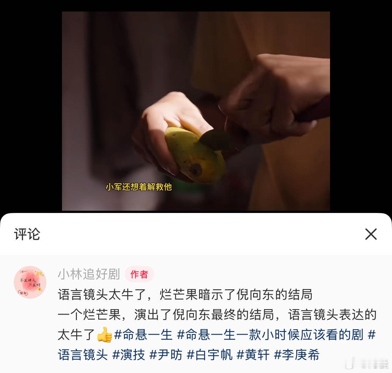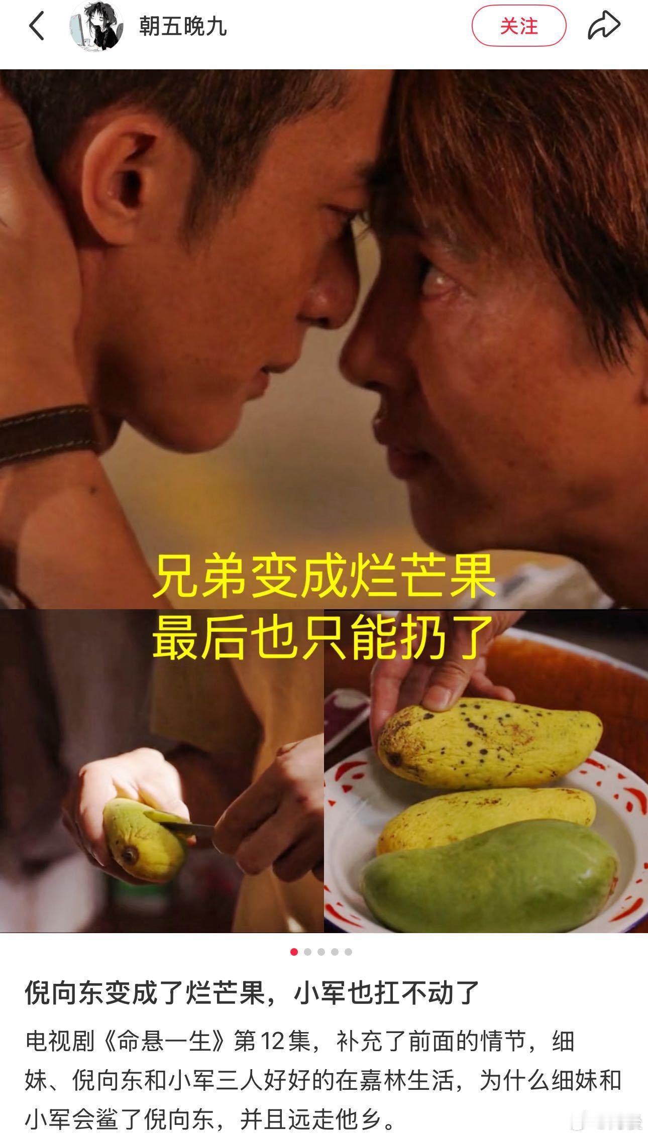 命悬一生烂芒果 最打动人的是导演的细节!烂芒果从新鲜到变质,每一步都对应倪向东的人生,不用直白说,大家就懂 “及时止损” 多重要,太戳心!