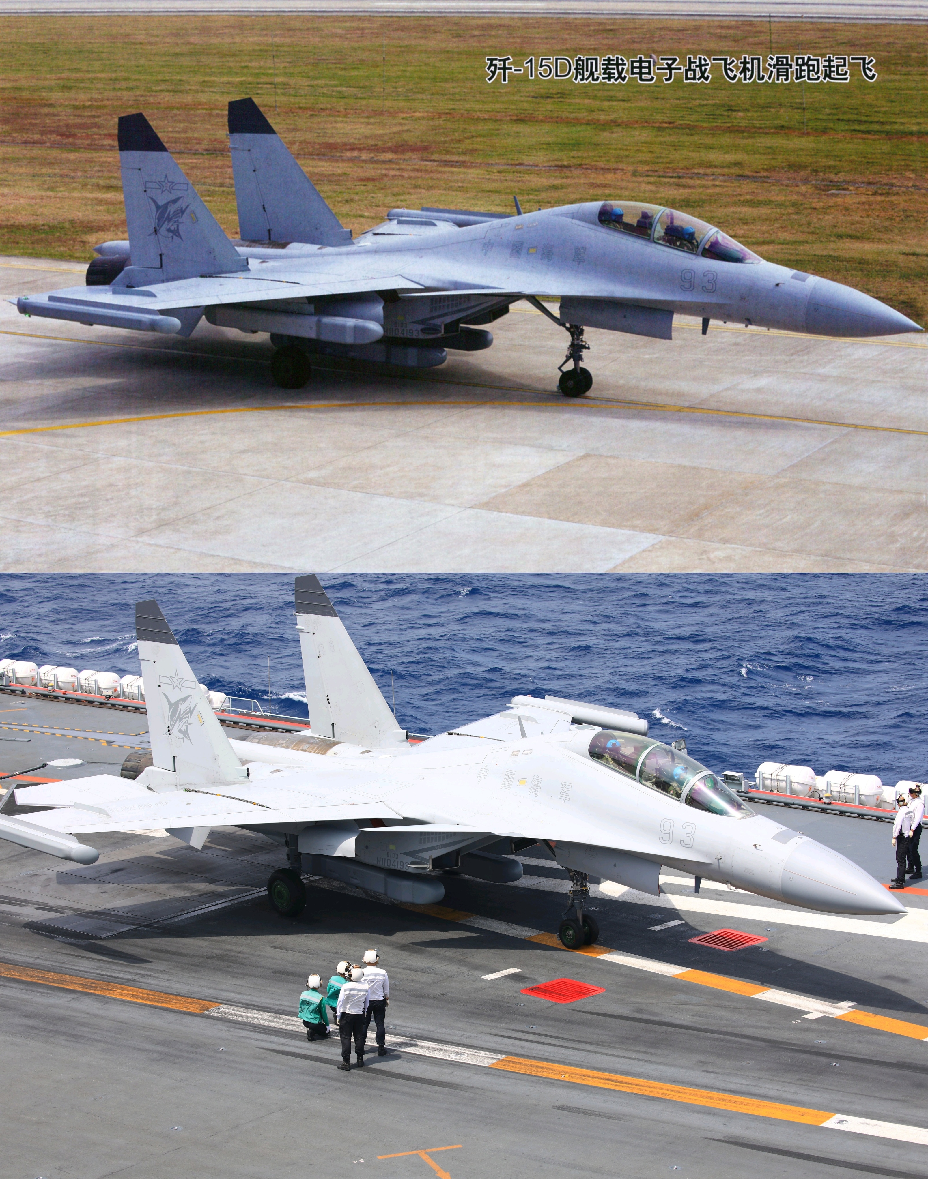 在陆地和航母,93号歼-15DH受滑跃起飞的重量限制,在电子战吊舱的挂载数量上取