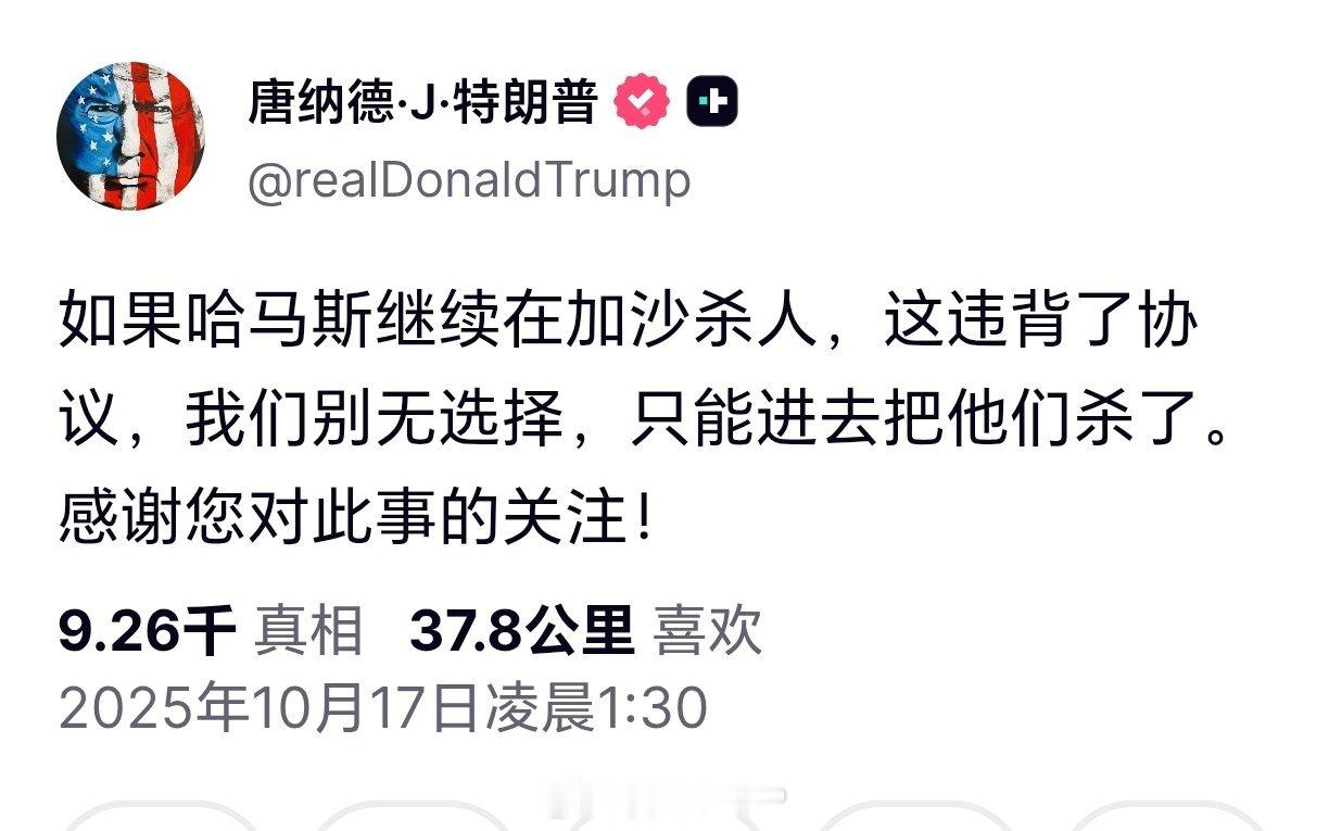 以色列与哈马斯互指未遵守停火协议特朗普对哈马斯发狠话,称“如果哈马斯继续在加沙杀人,这违背了协议,我们别无选择,只能进去把他们杀了”。