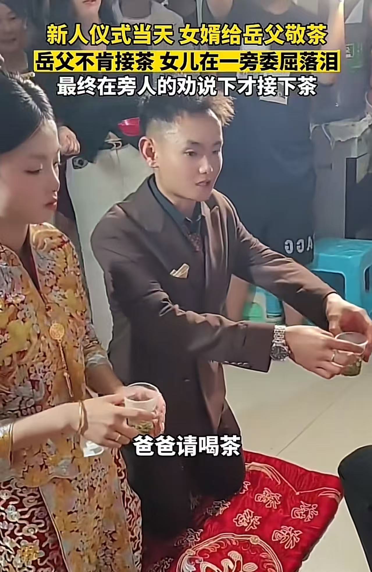 这父亲真是糊涂!女儿结婚,岳父对女婿不满意,在女婿敬茶环节故意不接茶,女儿在一旁委屈落泪,最终在旁人的劝说下,岳父才不情不愿地接下了茶!网友:父亲不是给女婿难看,这是给女儿难看,更给自己难看!