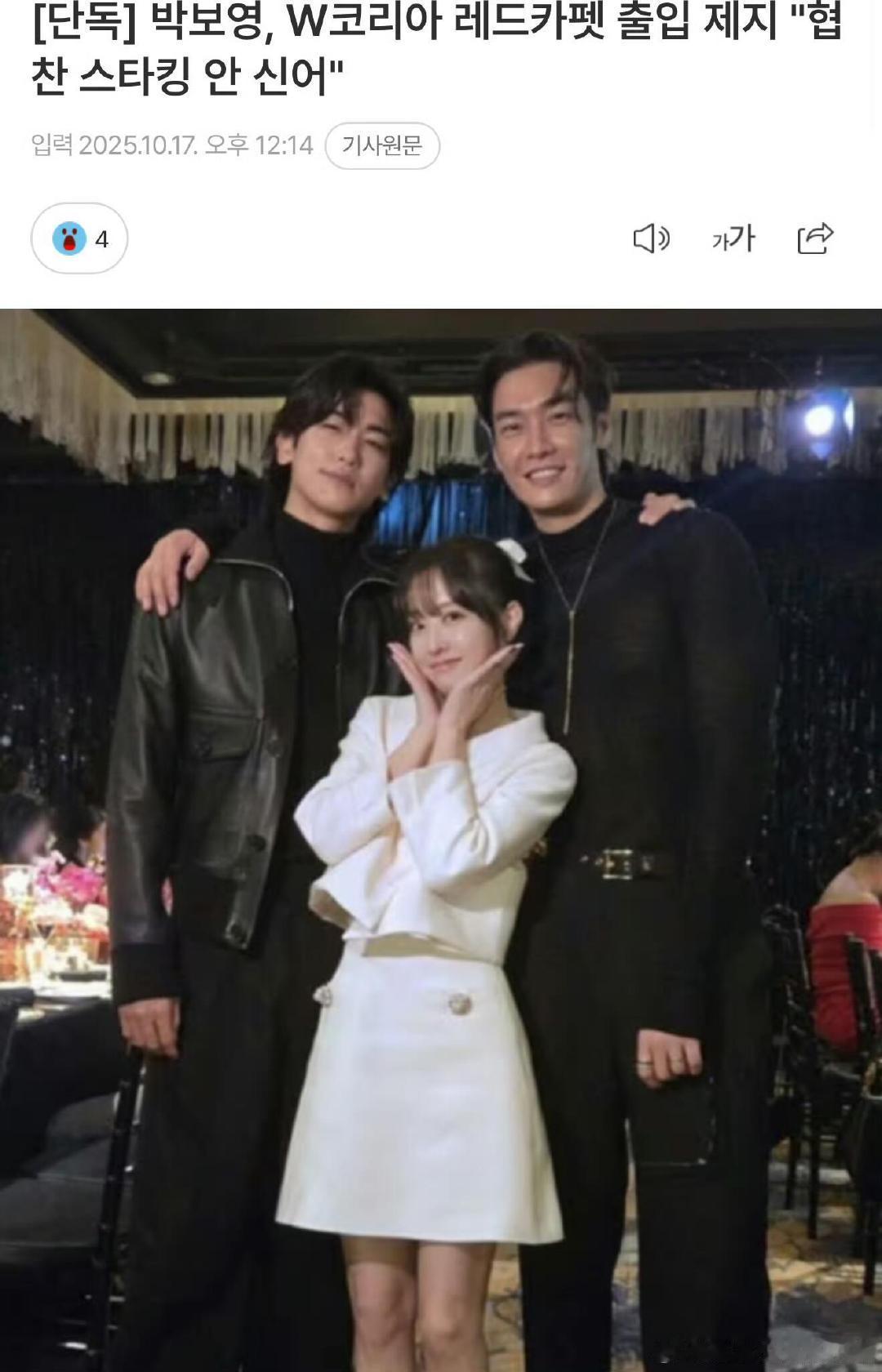 朴宝英因没穿丝袜被禁止走红毯朴宝英因没穿丝袜被禁止走红毯,这主办...曝朴宝