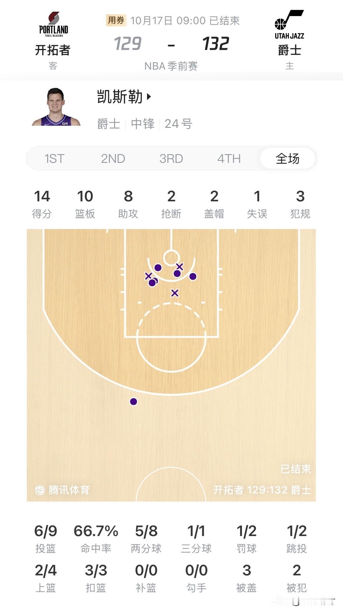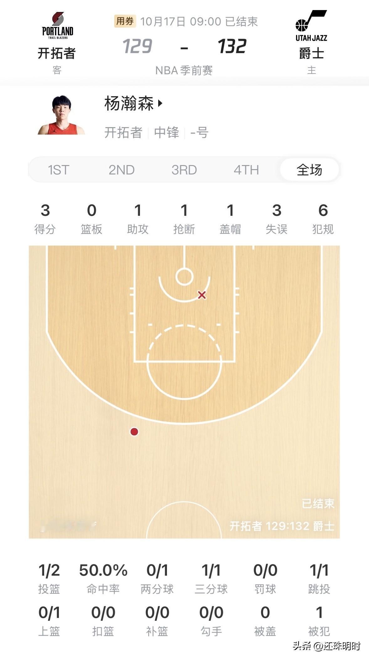 0篮板、6犯离场,杨瀚森真的憋屈哭了! 在今天开拓者以129比132惜败爵士的季前赛中,杨瀚森替补登场15分钟,全场2投1中,拿到了3分、1助攻、1抢断、1盖帽,还有3次失误和6次犯规。 与其对位的爵士中锋凯斯勒,首发出场25分51秒,9投6中,高效拿到了14分、10篮板、8助攻、2抢断、2盖帽的准三双数据,仅有1次失误和3次犯规。 通过对比可以看出,杨瀚森跟凯斯勒的差距还是比较大的;在6次犯规犯满离场坐在替补席时,杨瀚森本人也懊恼眼红流泪,这一幕也让不少关心他的球迷心疼不已。 但这就是残酷的NBA,希望球迷们在杨瀚森打的好时,不要过度吹捧;打的差时,不要刻意贬低,毕竟杨瀚森的确有许多需要不断提升的地方,先逐渐适应NBA的强度打好替补,再慢慢变得更好更强,💪