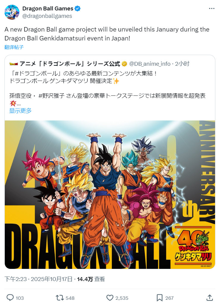 《龙珠》官方宣布,将在2026年1月25日于日本幕张举办的“龙珠元气弹祭”带来一