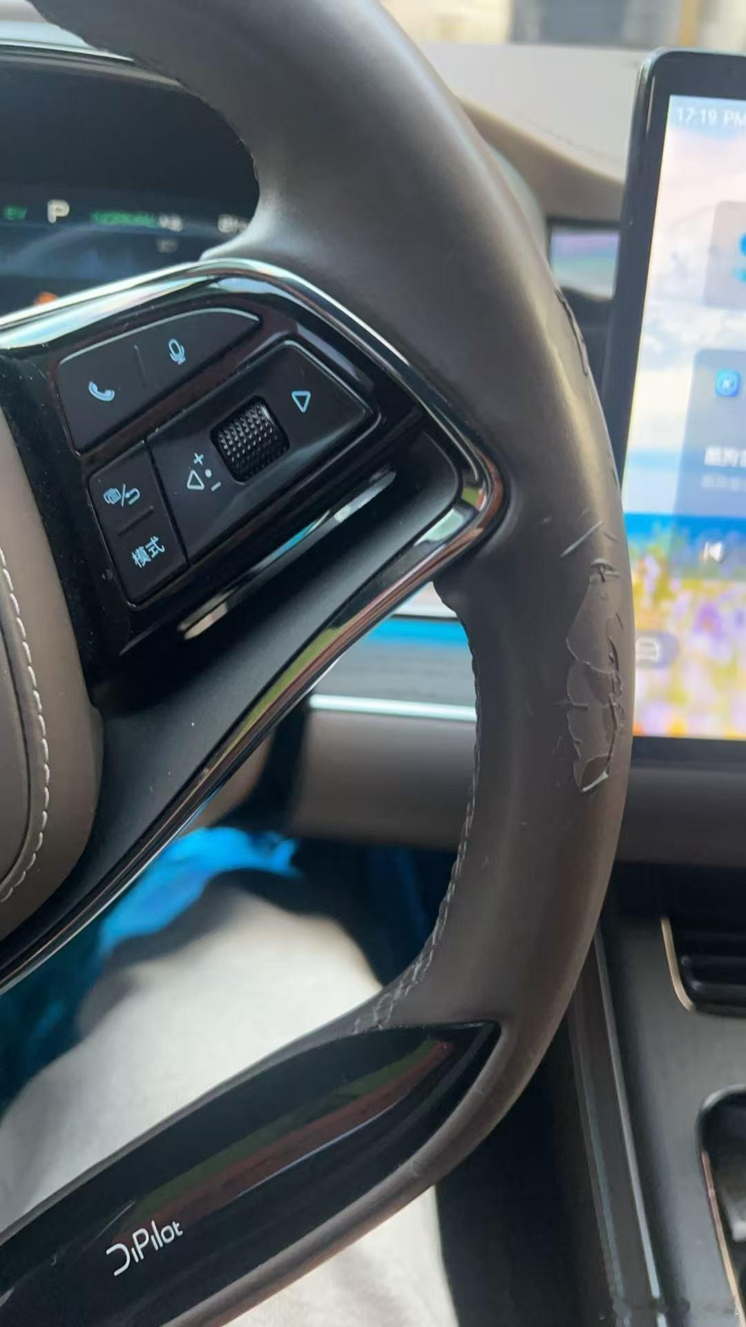 我哥22年9月买的汉dmi,三年多点方向盘脱皮,跑来问我咋办?我说质保期找4S免