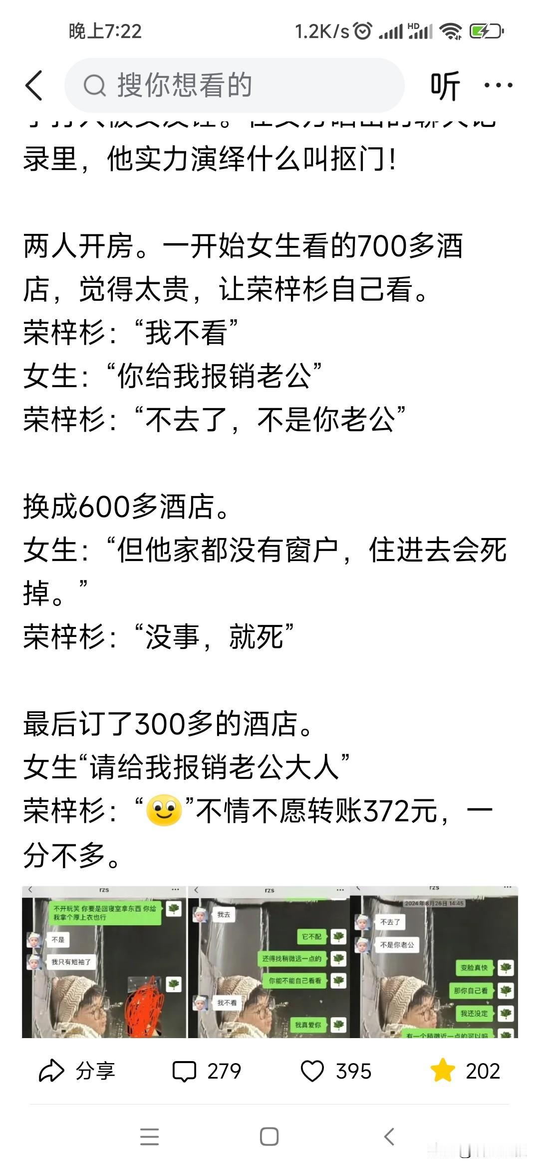 荣梓杉的塌房绝对和父母的教育有很大的关系。 今年刚刚19岁的荣梓杉塌房了,觉得还是挺可惜的。刚刚19岁就因男女之事步了吴亦凡的后尘,听说和几个女孩子都开房了。 没想到因为小气被禹熹实锤了,没有豪华宾馆,没有总统套房,372没有窗户的小旅馆,就办事了。 看了聊天记录,觉得那些女孩子也是活该,主动要求开房,自己付费,完事后还亲切的叫荣梓杉老公开房的费用报销一下。 父母的管教严重缺失,或许只管拿孩子捞钱了,根本没有树立正确的三观,刚刚步入青年,本不该发生这种风流之事。还有交友不慎,周围也都是些这类人,所以说苍蝇不叮无缝的蛋,也是有道理的。 可惜了,大好前程着凉了。