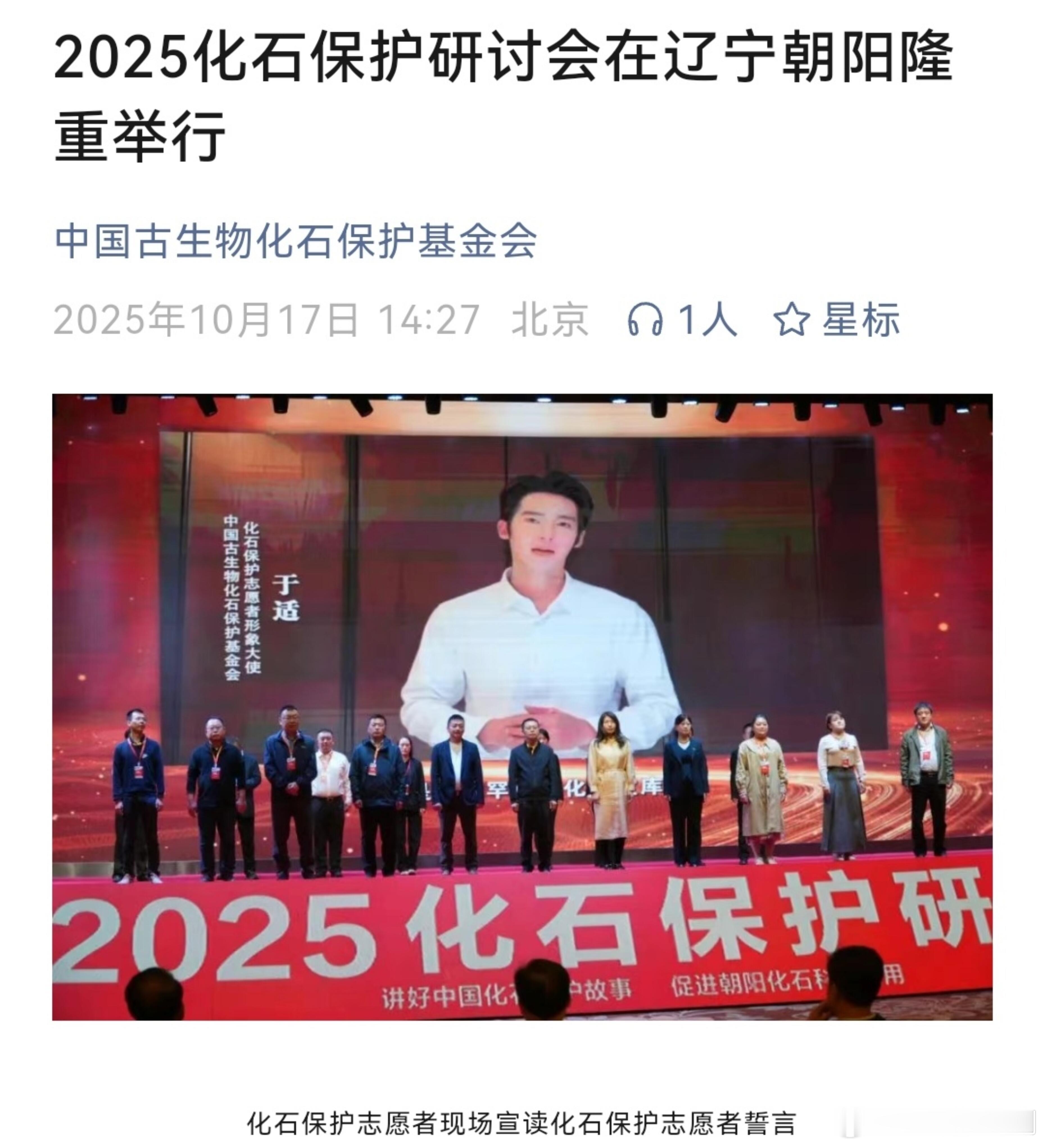 于适好红啊,带领化石保护志愿者宣读化石保护誓言,太有派了