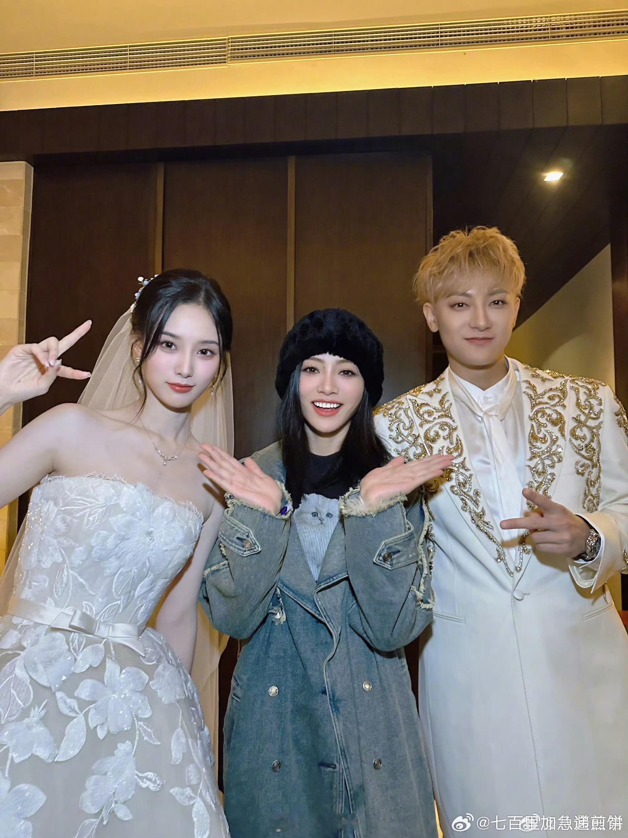 张天爱跟素人合影,胯真的好宽,大宅院似的