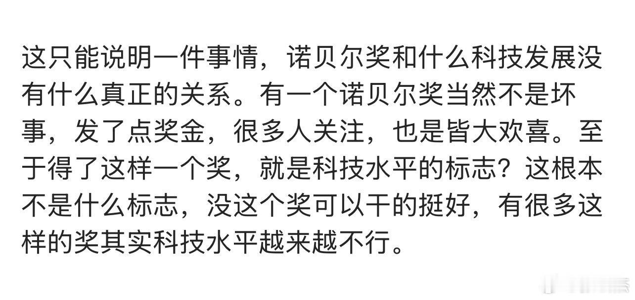 最近简中网络出现的诺贝尔奖成果无用论,可能是一百多年来人类社会头一次出现的情景。造物主在天上看了也会一声叹息。
