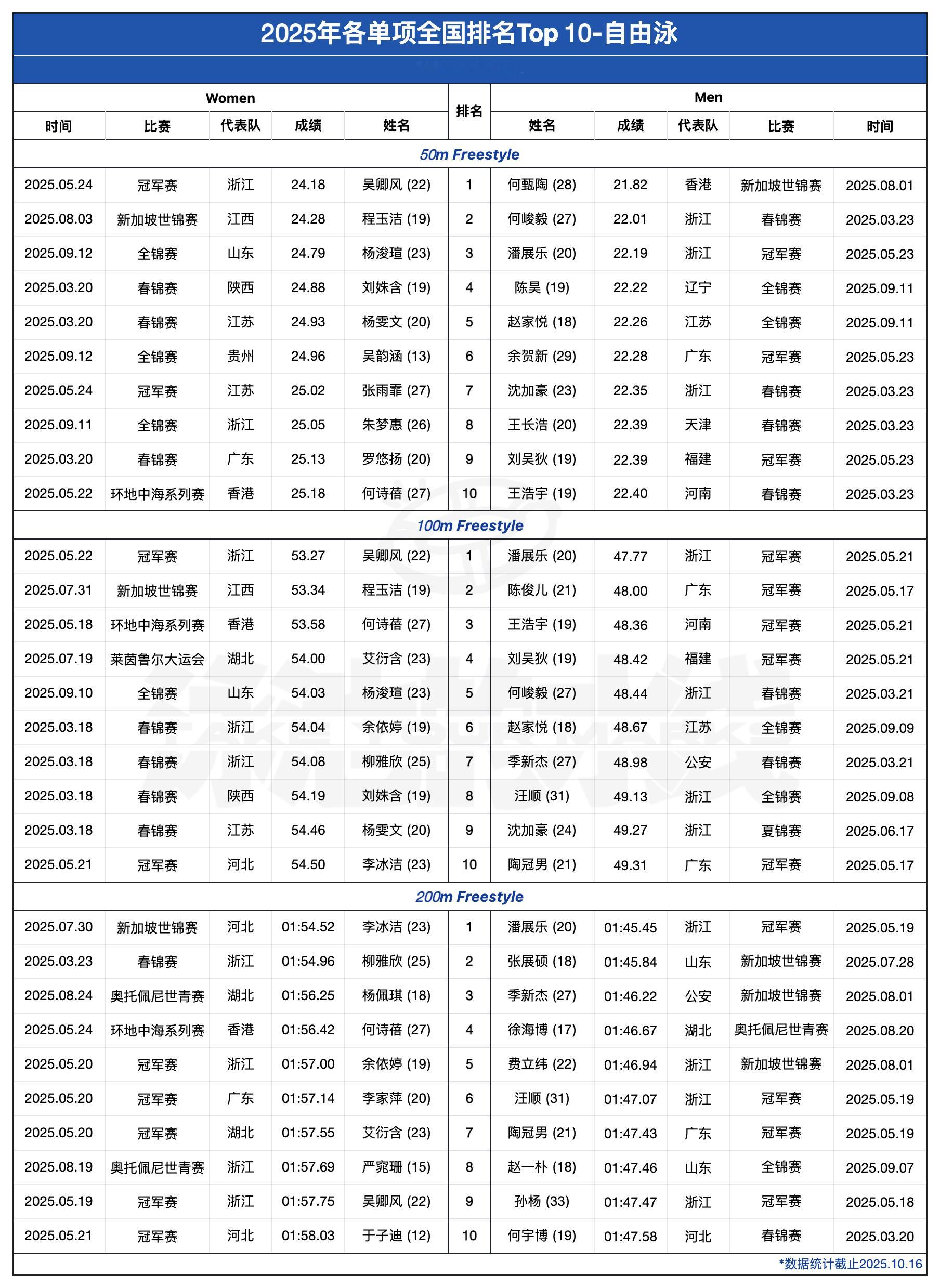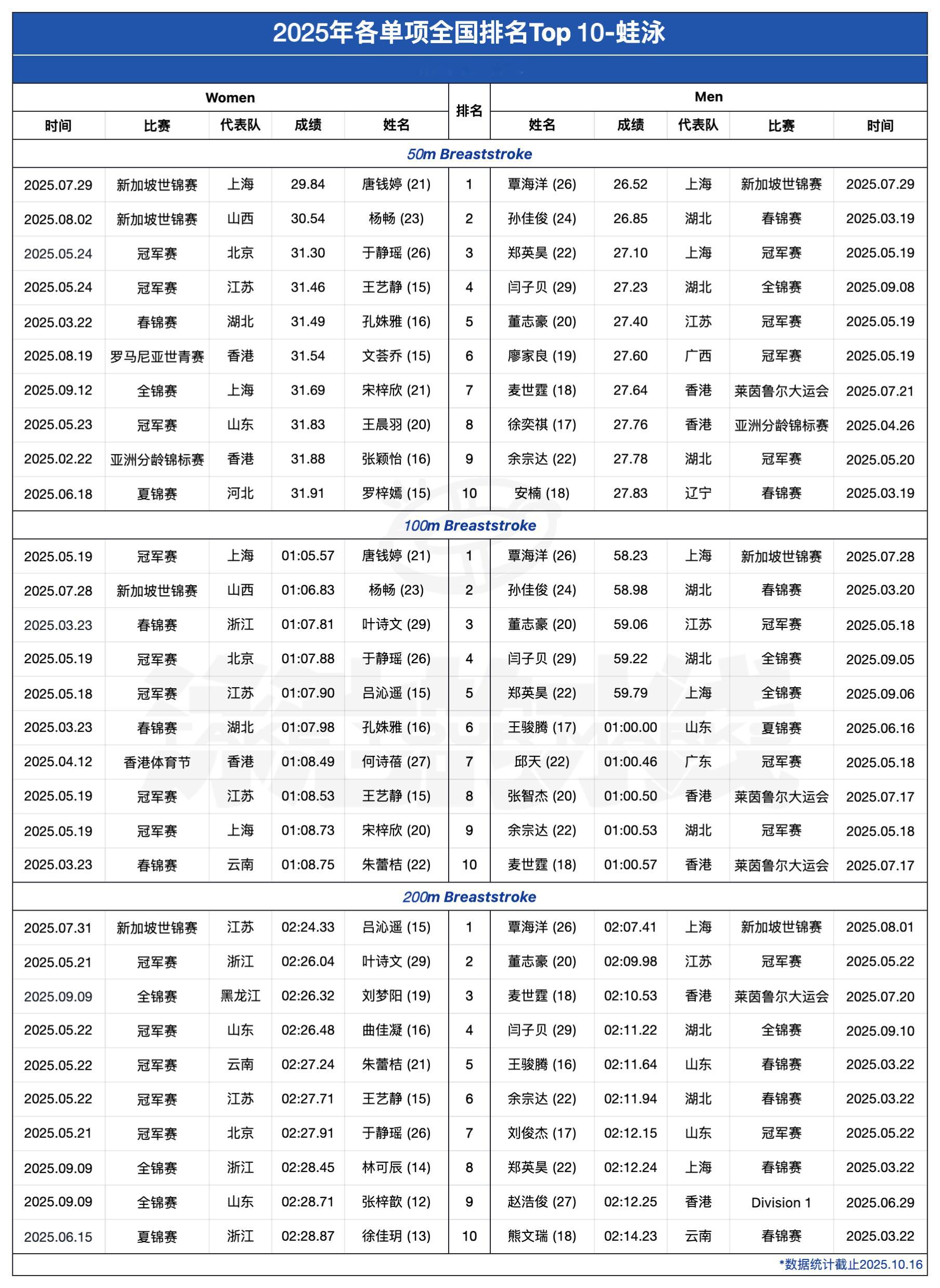 距离十五运还有不到一个月的时间,2025年截止目前的各项目全国排名top 10如下图所示⬇️