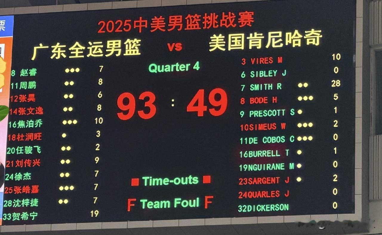 2025中美男篮挑战赛深圳站:广东全运男篮93:49狂胜美国肯尼哈奇攻防双优显