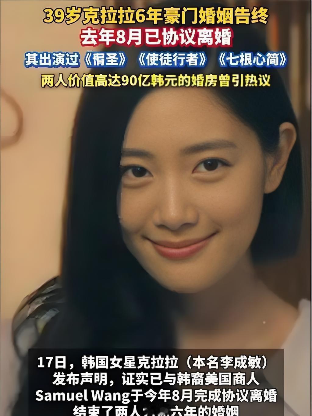 克拉拉离婚:婚姻不是童话,但尊重是最好的告别 10月17日,演员克拉拉(李成敏)的经纪公司证实,她在结婚6年后,已于今年8月通过协议离婚结束了婚姻。公司提到,双方经过长时间慎重讨论才做出决定,因为需要顾及家庭立场,消息公布较晚。克拉拉也通过公司表达歉意,对曾经祝福过她婚姻的人感到遗憾。克拉拉2006年出道,曾演过《情圣》等作品,事业和婚姻都曾备受关注。 听到这个消息,说实话,我心里有点唏嘘。结婚6年,看起来不长不短,但谁能知道背后有多少努力和无奈?离婚从来不是一件轻松的事,尤其是公众人物,还得面对大家的眼光和议论。克拉拉和配偶选择“协议离婚”,商量好了再分开,这说明他们尽力用成熟的方式处理关系,不是为了炒作或撕破脸。想想看,现实中多少夫妻分手时闹得鸡飞狗跳?能这样体面告别,其实挺难得的。 婚姻就像一场长途旅行,有的人能一起走到终点,有的人中途就得下车。克拉拉的决定,让我觉得:离婚不是失败,而是对彼此幸福的重新选择。咱们普通人也一样,结婚时轰轰烈烈,离婚时如果也能互相尊重,那才叫真正的成长。别总盯着明星的私生活指指点点,谁的生活没有起起伏伏?多点理解,少点judge,才是该有的态度。 克拉拉的离婚,提醒我们:爱情可以热烈,离别也可以温柔。人生路长,尊重彼此的选择,才能活得更自在。你对这件事怎么看?欢迎在评论区分享你的想法~