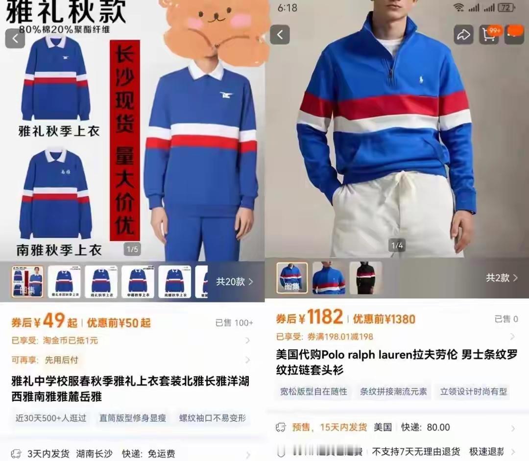 当雅礼校服撞脸大牌,青春回忆秒变“高奢平替”! 最近,一条“拉夫劳伦设计撞脸长
