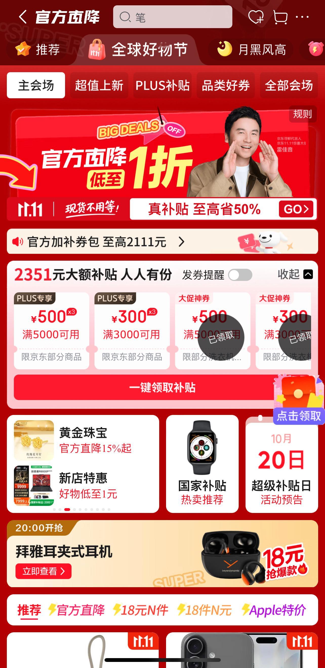 救命!京东是懂怎么给我省钱的!直接加码发2351元起现货惊喜补贴,重点是人人有份,里面光PLUS超级补贴就给到1111元!想换手机的姐妹还能领华为至高1500元大额券和iPhone 17 Pro满3000减300的大额券,今年11.11不用愁券不够啦!想买的东西现货不用等,还有价保服务,这便宜不占白不占啊,姐妹们赶紧冲! 京东11.11 又好又便宜 京东11.11发放2351元起现货惊喜补贴 传送门: 立即领取2351元起现货惊喜补贴,人人可领!现货不用等直接买,有价保更省心!