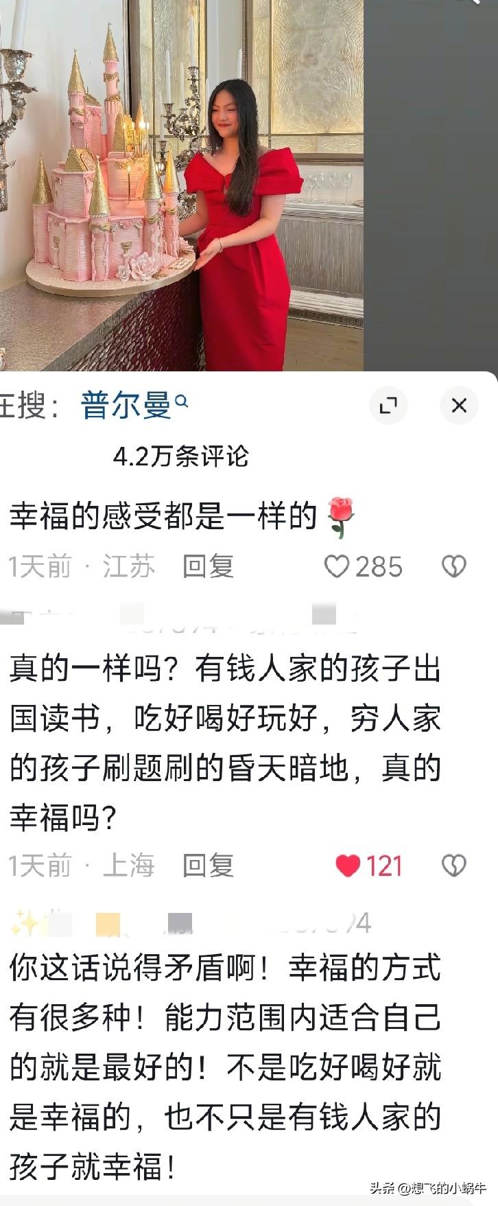 我真的搞不懂这些在李湘评论区晒自己女儿的女人!在我看来就是一群喜欢攀比又虚伪的人! 你承认别人的优秀有那么难吗?你跟王诗龄有啥对比性??? 尤其是孩子坐地上吃饭这个女的,她想表达啥?意思是自己的孩子多懂事多能吃苦耐劳??还是想说自己的女儿也漂亮? 真心受不了这样的女人,因为我妈以前就是这样的女人,不分场合见人就拿我说事说话,我表面乖乖的赔笑脸,内心哭泣千万次了! 因为家里穷,我从不要任何东西,他们也从来不主动给我买啥,我理解他们的穷苦,但是我妈见人就说,你看我家这货这么大了都不爱美,不打扮自己…有的跟她的同类就各种骂我指责我让我学学怎么做女孩子,有的就知道我家那情况,人家笑笑不说话……… 她说一两次就算了,每次见人就说,有一次我真的忍无可忍了,怼了句,我也想打扮啊,可是你们没钱,有时候上学学费都是借来的,你让我怎么忍心找你们要钱买衣服买东西?我拿啥打扮啊?她瞬间变脸瞪着我,我低下头,亲戚奶奶说,她不打扮也很心疼,娃多懂事,寒暄几句…… 结果我回到家,我就知道我又要迎来一顿拳头暴风雨了,果然没错,因为给她丢脸了,一到家对我就是一顿暴打……从那以后我都不爱跟她出门,呵呵了,一辈子都忘不了! 有些人,穷的理直气壮,还不忘给旁人嘚瑟他们是多爱孩子!在外人面前特别能装,精神上提供不了任何爱,物质上更提供不了!还要一味的跟人攀比成性!!! 所以我发誓,我不要做像我妈那种虚伪又无能只会发脾气只会抱怨的女人! 所以现在的我,疼爱我的娃,我们不跟别人比,不去在外人面前炫耀我的孩子这那的任何一方面,别人夸孩子笑笑就行,因为谁说的话真假都在心里会衡量,更不会去在别人评论区晒自己的孩子让别人评头论足,也会反省自己,既然给不了孩子更好的生活,就不要假装她过的很幸福,时常站在孩子的角度考虑问题,不强迫孩子做自己不喜欢的事,让她从心里接受自己的妈妈是真心在乎她心里感受的人,心里健康的平安普通长大就好!!! 在我看来,穷就过穷日子,不要硬装自己有多为孩子着想对孩子多好,你连最基本的生活保障都无法给孩子提供更好的,你还好意思在大富豪跟前攀比炫耀?难道自己的女儿看到王诗龄不羡慕吗?不心酸吗?孩子懂事,就觉得孩子幸福?可笑荒唐至极!看的很气愤,就觉得一个碗都放地上让孩子吃的人,她在生活中能有多讲究多幸福?真的可笑死了,还在那跟一个女网友对骂!真的同情她那可怜的孩子!被放在人家评论区被人评头论足!!!唉!!!