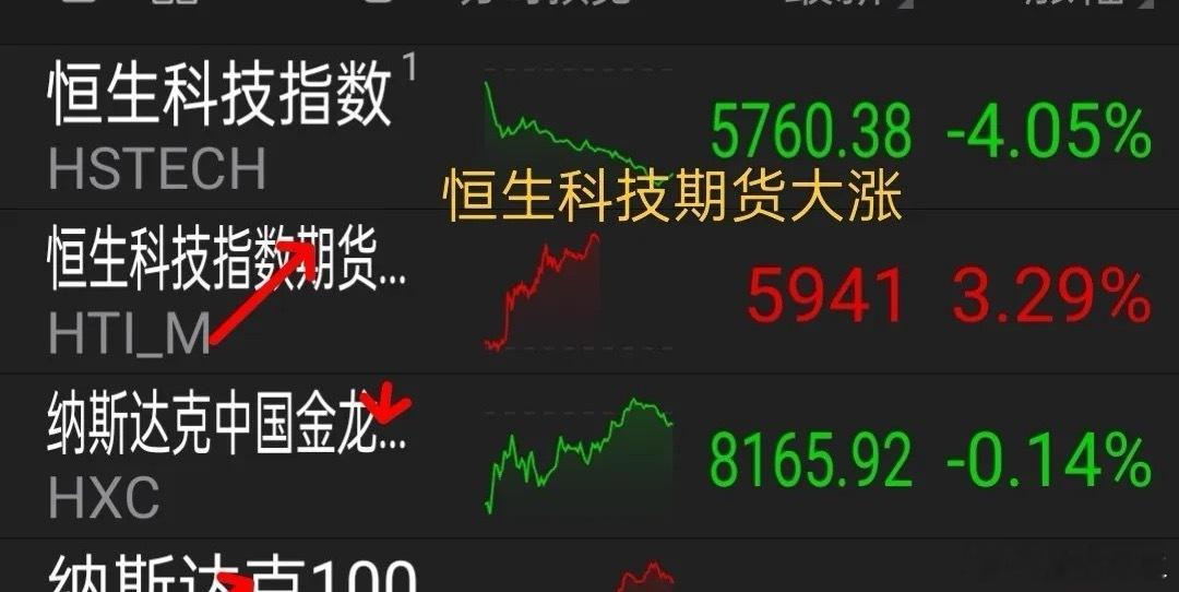 18外盘利好消息, 恒生科技期货大涨,下周高开无疑