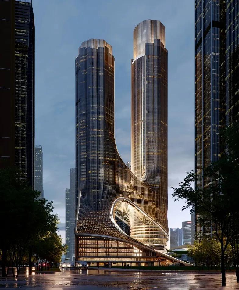 深圳湾超级总部基地的“十字双轴”中心,由扎哈·哈迪德建筑事务所设计的C塔正加速崛