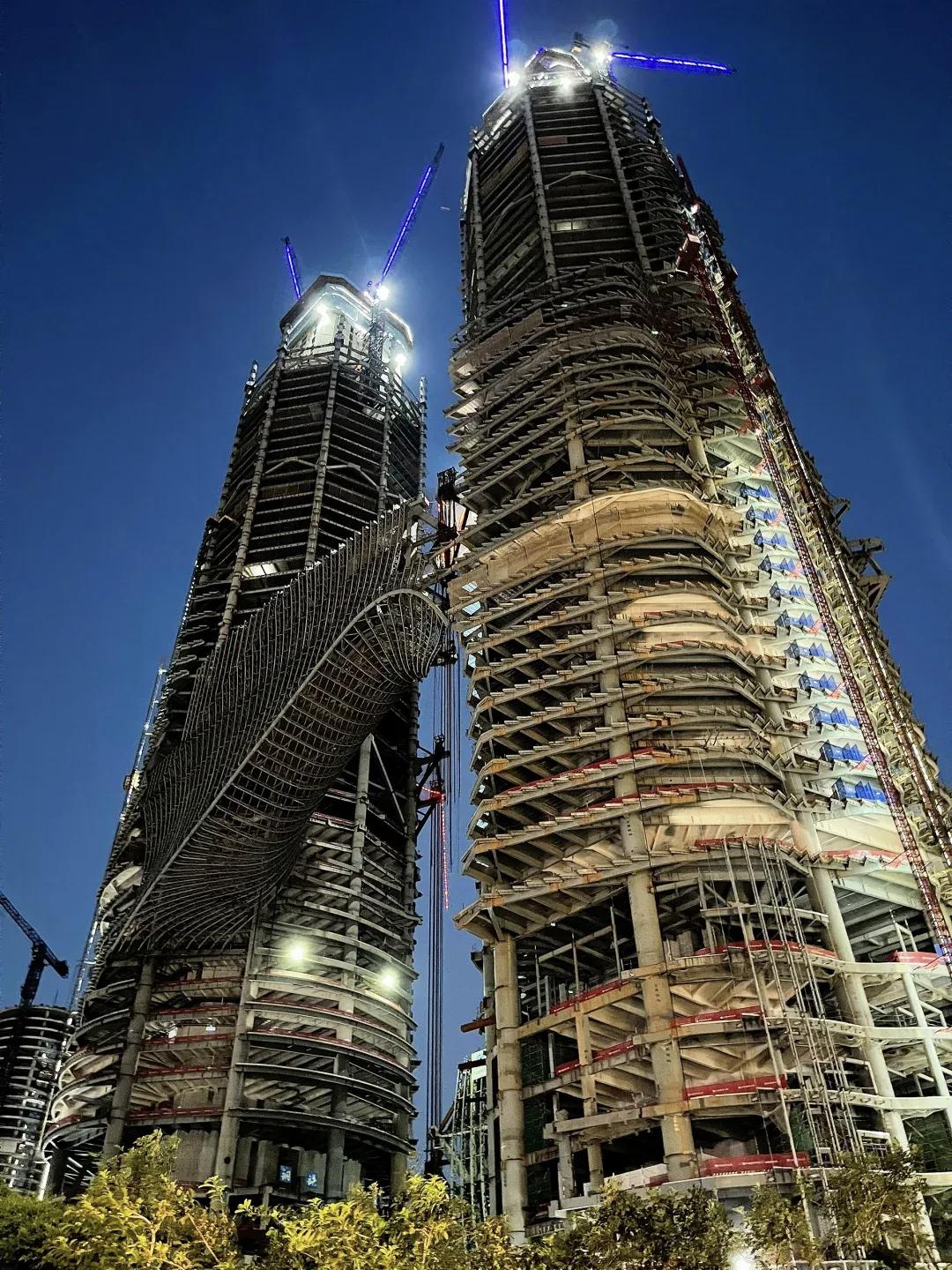 深圳湾超级总部基地的“十字双轴”中心,由扎哈·哈迪德建筑事务所设计的C塔正加速崛起。从最新现场画面可见,项目钢结构施工已进入收尾阶段,395米东塔与355米西塔的双子轮廓愈发清晰,连接两塔的5400吨钢结构连廊已完成整体提升,这座被誉为“未来之塔”的超级综合体正从蓝图走向现实 。 作为深圳湾超总“深湾都市核心”三大地标中进展最快的项目,C塔占地3.63万平方米,总建筑面积约55万平方米,总投资达165亿元,整体最高处达400米,是目前全国最高的连廊双子塔 。其地下空间与已运营的地铁13号线(衔接深圳湾口岸)及规划中的穗深城际铁路无缝衔接,地面与“六纵六横”路网联动,构建起辐射大湾区的TOD交通枢纽,实现“通关-轨交-商业”的立体换乘闭环。 项目规划涵盖高端办公、旗舰商业、奢华酒店及文化公共空间,依托深圳湾超总已聚集的招商银行、中国电子等十余企业总部基础,未来将打造跨国企业与国际机构的世界级聚集平台,成为资源交汇的“湾心节点” 。 C塔以“多维垂直城市”为核心理念,东塔高约395米、西塔约355米,两塔通过钢结构连廊相连,形成极具辨识度的天际线符号。建筑内部采用无柱空间设计,搭配双层自遮阳玻璃幕墙与智能通风系统,可根据环境动态调节能耗,实现节能运行 。 裙楼的“生态梯田”景观是设计点睛之笔——从首层向上层层退台的绿植系统,将中央绿轴的自然景观引入建筑内部,梯田水景集成生物过滤技术,地下则配套大规模自行车停放区与充电设施,绿色理念贯穿全域。这种“建筑-自然-交通”的融合设计,让C塔成为超高层与生态共生的典范 。 项目钢结构总用钢量达7.2万吨,其施工过程堪称智能建造的标杆实践。中建钢构自主研发的智慧建造中心搭载10台柔性焊接机器人,焊缝一次成型零缺陷,效率较人工提升40%;大功率激光除锈机以传统方式2倍的效率实现环保除锈,全程无污染物排放 。 1300㎡机电数字化加工厂的投用更实现“毫米级建造”:七线自动化风管生产线20秒即可加工一张板材,8小时产能达2500㎡,人力投入减少50%。配合BIM全要素建模技术,项目提前消除647项机电冲突,再通过AR技术将模型“投射”至现场指导安装,核心筒施工最快达“三天一层”,较传统方式效率提升50%。自主研发的贝雷式智能顶升平台与“C塔驾驶舱”数字孪生系统联动,实时监测16台智能设备运行数据,构建起全周期智慧管理体系 。 作为住建部科学技术计划课题示范项目,C塔构建了覆盖“设计-建造-运营”的全周期低碳体系。施工阶段采用智能防尘降噪“天幕”与旋转高压水枪降尘,建筑垃圾减排率达30%;运营阶段通过数字孪生系统实时调控能耗,预计运营能耗较常规建筑降低10.4% 。 据中国建研院测算,项目全周期减碳量将达28.8万吨,相当于栽种63.6万棵树,其低碳指标体系包含3项一级、17项二级先进指标,为超高层建筑破解“高碳锁定”难题提供了可复制的样本 。 目前,C塔正朝着2026年底竣工的目标推进。这座集枢纽、生态、智能于一体的超级综合体,不仅将重塑深圳湾天际线,更将成为大湾区“科产城”融合的新引擎,为超高层建设注入绿色与智慧的新内涵。