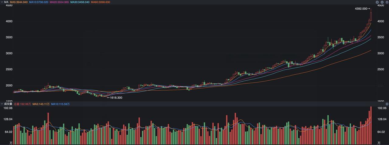 贵金属出现大幅波动,现货黄金跌幅高达3%,之前几个交易日黄金最高点一度逼近了4400美元,不仅仅是金价大跌,现货白银日内的跌幅也达到了6%,其实对黄金和白银来说,突然之间出现这种变化,只能说明市场的避险情绪减弱,此前黄金和白银的持续大涨,就是市场担心外部的不确定性增加,资金的避险需求升温。 如果排除消息面的干扰,其实看看最近黄金和白银的走势,说实话有点过于疯狂了,特别是纽约期金的周线在连续出现小阳线之后,本周出现了一根大阳线,即便是在昨夜金价波动的情形下,本周的涨幅也有5.76%,关键是这根阳线属于加速状态,通常情况下,当出现这种现象的时候,很可能意味着一段时间的升势暂时走向末端,所以目前对黄金和白银的下跌短期内还是要适当的谨慎为主。