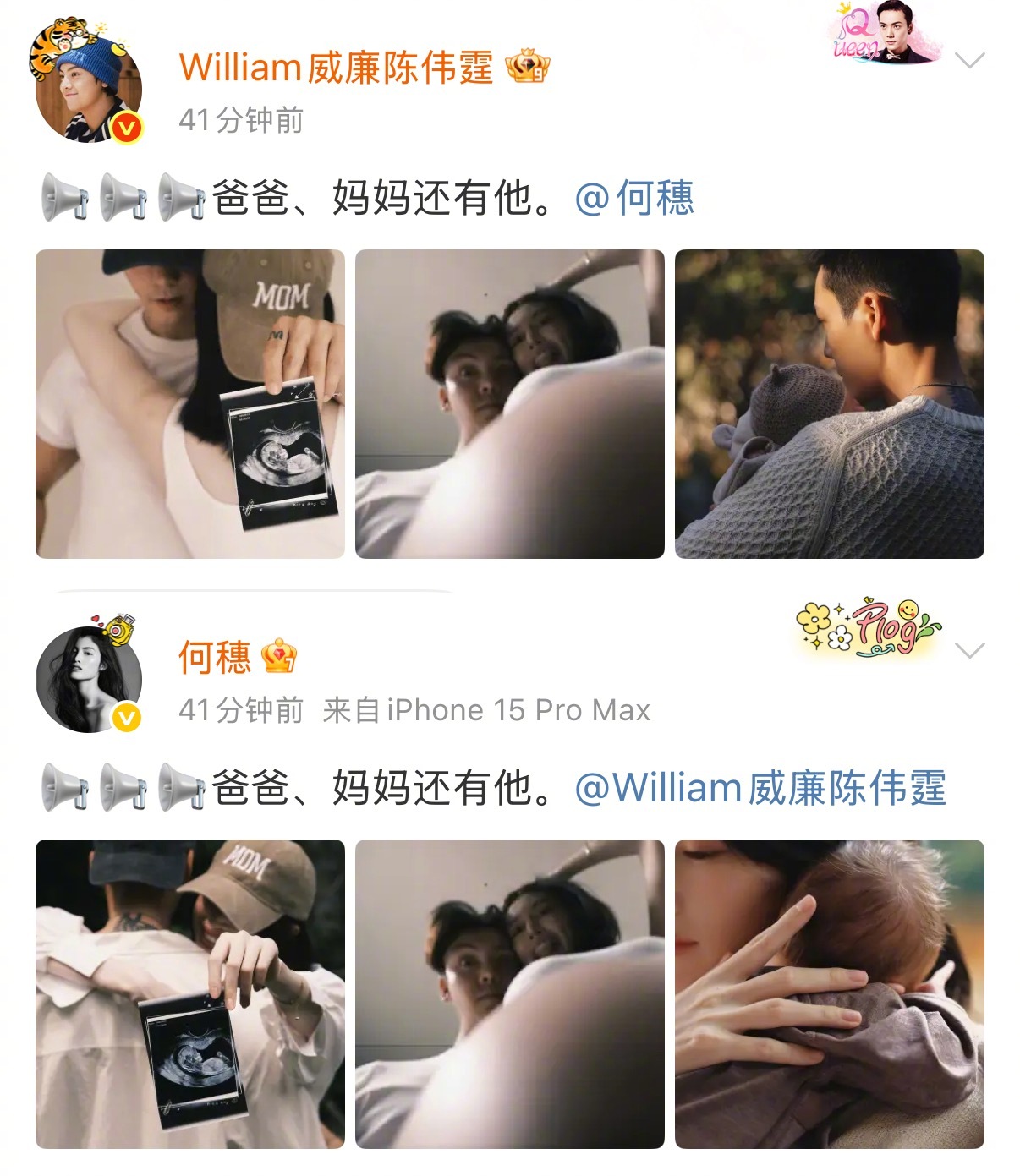 哇塞!!!陈伟霆何穗官宣生子!!!