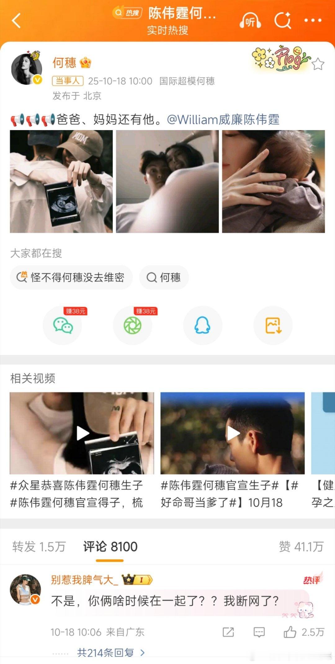 陈伟霆何穗官宣生子这……赵露思好不容易有点起色的《许我耀眼》cp,一下子就以男方官宣生子结束啦???