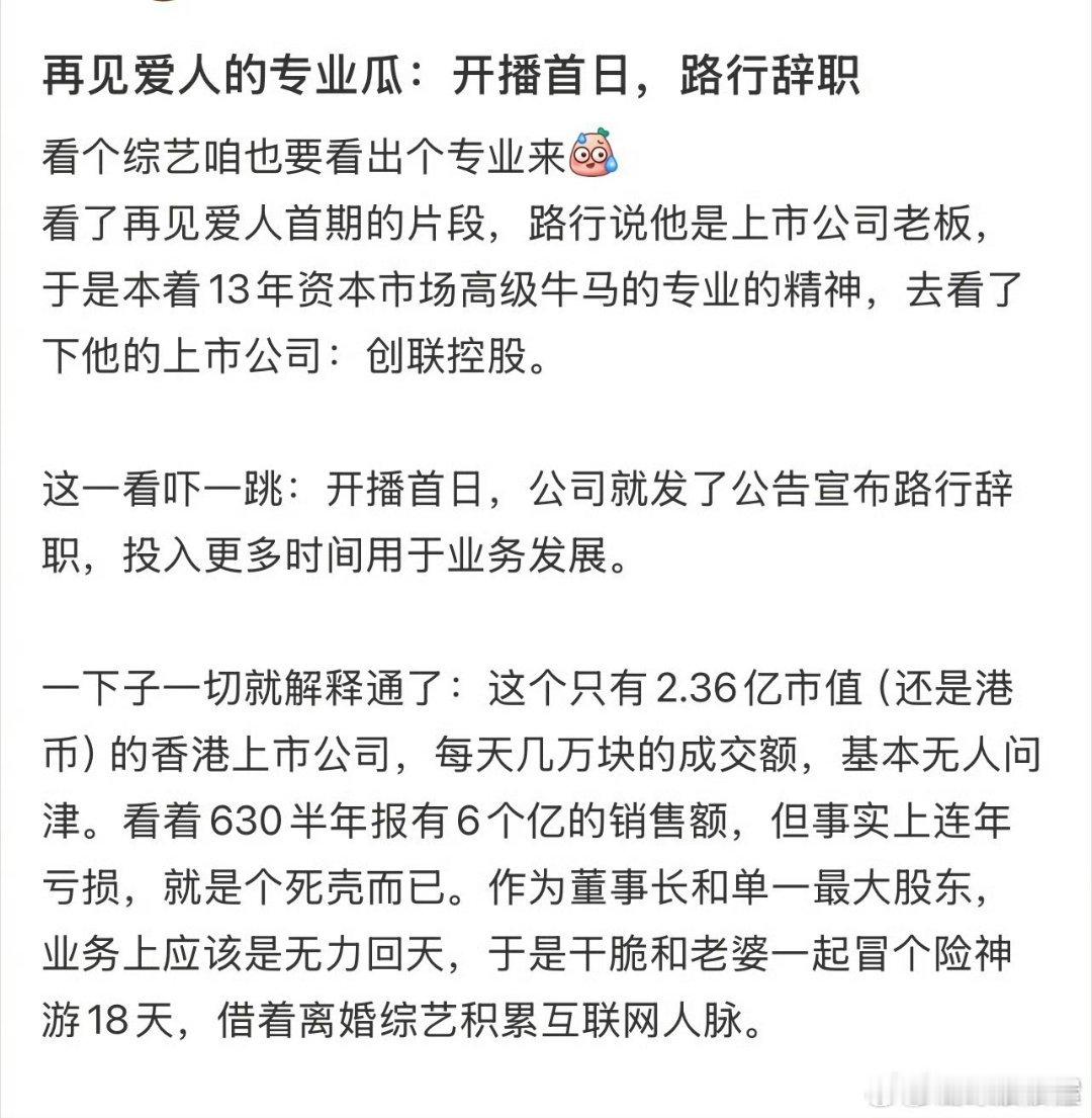 原来这季《再见爱人》开播时候,邓莎老公路行就从那个公司辞职了,,,看来对这季节目