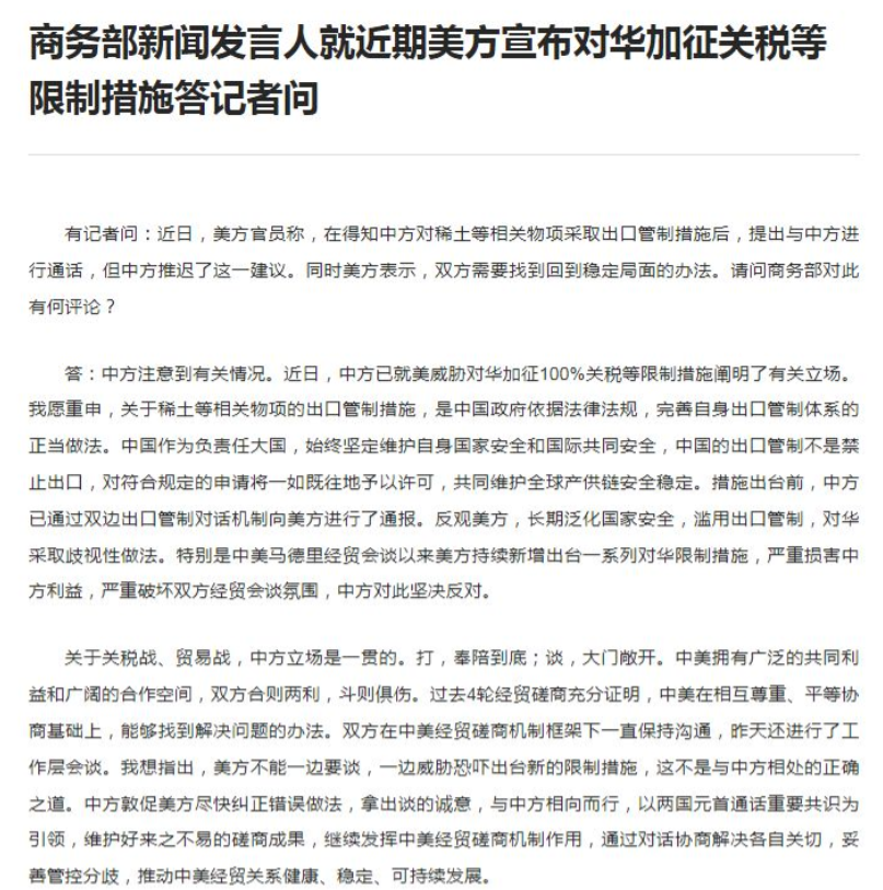 美国威胁加税,中国商务部坚决反击!贸易争端背后,美方态度混乱,内部分歧加剧,决策难以统一,未来贸易博弈悬而未决…… 麻烦看官老爷们右上角点击一下“关注”,既方便您进行讨论和分享,又能给您带来不一样的参与感,感谢您的支持! 中美之间的贸易争端再度升级,商务部发言人针对美国加税威胁作出了强硬回应,表明了中国在这一问题上的坚定立场。 中方强调,尽管美国不断威胁加征关税,中国在处理这场贸易战中的立场没有任何变化,即愿意进行谈判,但绝不会在核心利益上做出任何妥协。 而在美方一方,面对中国的反制措施,内部的矛盾和分歧也愈加明显,导致其难以做出统一决策。 这并不是中美之间第一次发生贸易争端。自2018年以来,双方在关税、市场准入、知识产权保护等问题上已展开了多轮谈判和博弈。 美国对中国的经济崛起心生忌惮,试图通过加征关税来遏制中国的快速发展。 起初,美方主要针对中国产品加征关税,试图通过经济压力迫使中国在贸易、技术和产业政策上做出让步。 然而,尽管美国通过关税施压,贸易不平衡问题并未得到根本解决,反而引发了更为复杂的经济后果。 中国的反击也相当果断。从对美国产品加税,到在全球范围内加强与其他国家的贸易合作,中国展现了捍卫自身经济利益的决心和能力。 而美方在面对中国反制措施时,逐渐陷入了内部分歧的困境。 美国政府内部分歧加剧,尤其在特朗普政府时期,贸易政策的不确定性更为明显。 虽然特朗普曾强硬表示要通过加税措施迫使中国让步,但实际上,这种策略带来了许多副作用,美国国内的消费者和企业开始为高关税买单,许多美国制造业也因无法从中国进口廉价原材料而受到影响。 一些经济学家和企业界人士开始质疑加税政策的效果,认为它未必能达到预期的目标。 在美方内部,一部分人认为继续加征关税是遏制中国崛起的唯一方式,而另一部分则担忧过度加税会导致全球经济衰退,甚至影响到美国自身的经济增长。 这种矛盾的态度让美方在如何应对中国的反制措施上陷入了困境。随着时间的推移,这种不统一的决策使得美国的对华政策变得更加复杂,也使得中国在应对贸易争端时显得更加从容。 中国商务部发言人明确表示,中方始终坚持通过对话解决争端,愿意在公平、平等的基础上与美国展开谈判,但绝不会在核心利益上做出任何妥协。 中国在多年的贸易战中积累了丰富的经验,并且在应对外部压力时逐渐形成了成熟的应对机制。 商务部强调,贸易争端不仅仅是关税的问题,更涉及到经济体系的调整和长期的战略布局。 中国政府也加强了对外贸易多元化的推动,不仅进一步深化与欧盟、东南亚、非洲等国家和地区的贸易合作,还加快了自贸区建设,推动区域经济一体化。 中国通过扩大对外开放,为全球经济增长提供了更多的动能。在这种背景下,美方的威胁显得有些力不从心。 随着美国国内对贸易政策的讨论日益激烈,部分人开始反思加税政策是否是解决问题的最佳路径。 尽管美国政府不断重申“强硬”立场,实际情况却显示,美方的加税威胁越来越难以落实,特别是在国际社会和全球经济的压力下,特朗普政府对中国的强硬政策显得有些疲态。 对于未来的中美贸易关系,许多分析人士认为,美国可能会在某些领域做出妥协,尤其是在全球经济形势愈加复杂的情况下,避免加剧贸易战已经成为一些美国政客的共识。 在美国国内尚未达成统一的决策前,中美之间的贸易博弈依然将持续。
