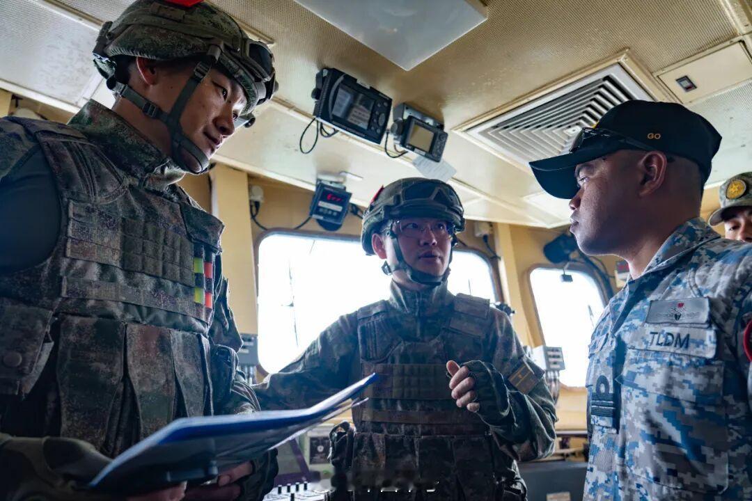 【和平友谊2025 中马海上参演部队展开适应性训练】当地时间10月17日上午,参加“和平友谊-2025”联演的中马海上参演部队组织临检拿捕混编合训。双方围绕编队运动、舰艇通信、登陆作战等多课目展开,不断完善方案预案,为后续海上实兵演练顺利开展夯实基础。(南部战区)