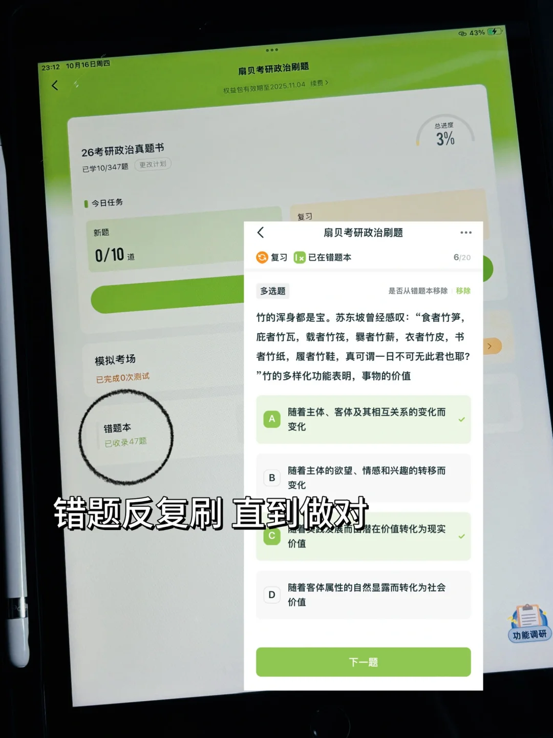 2、二轮及以上刷题+背诵手册:刷完题后,错题回到背诵手册并重点标注和记录