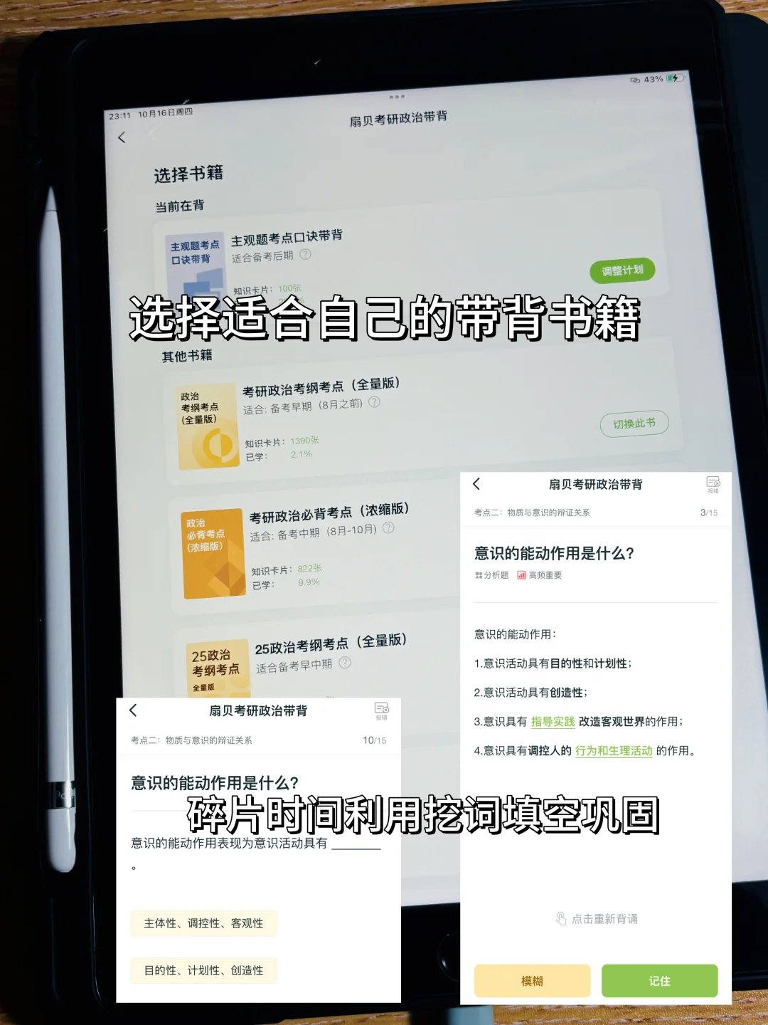 2、 每天利用碎片时间听带背音频or看挖空自测巩固记忆