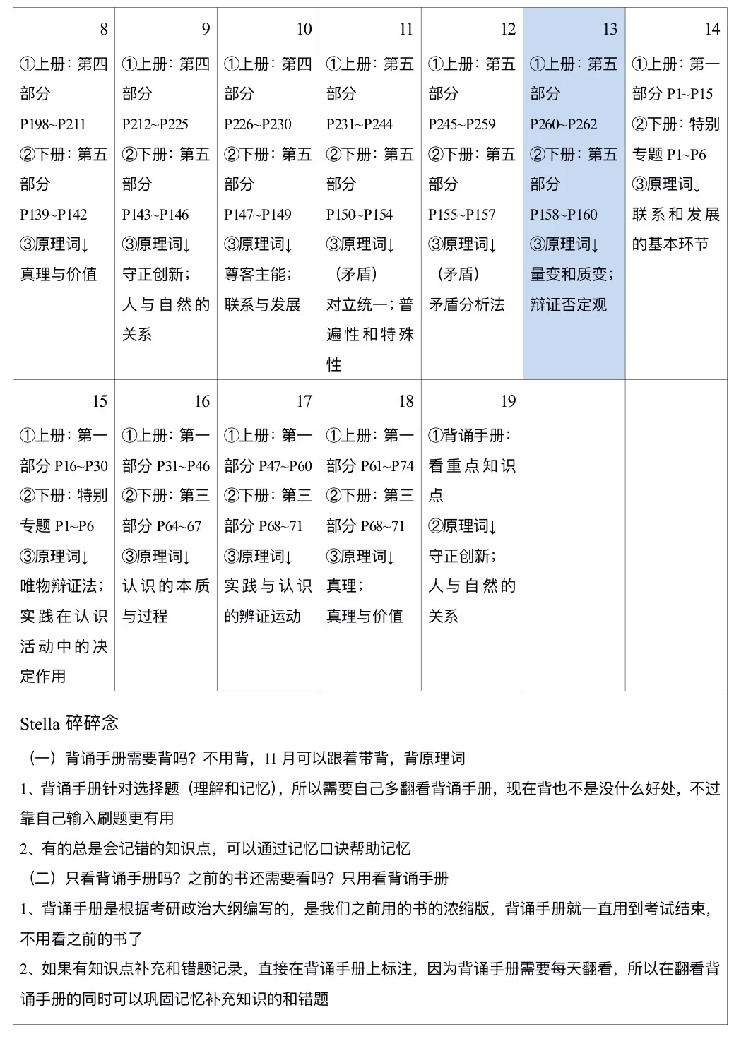 1、背诵手册是根据考研政治大纲编写的,是我们之前用的书的浓缩版,背诵手册就一直用到考试结束,不用看之前的书了