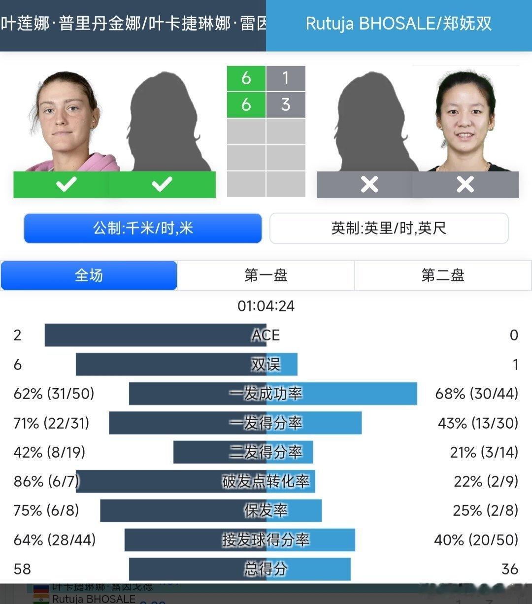 郑妩双🇨🇳/博萨莱🇮🇳1-6/3-6不敌普里丹金娜🇷🇺/雷因戈德🇷🇺,获得亚军。