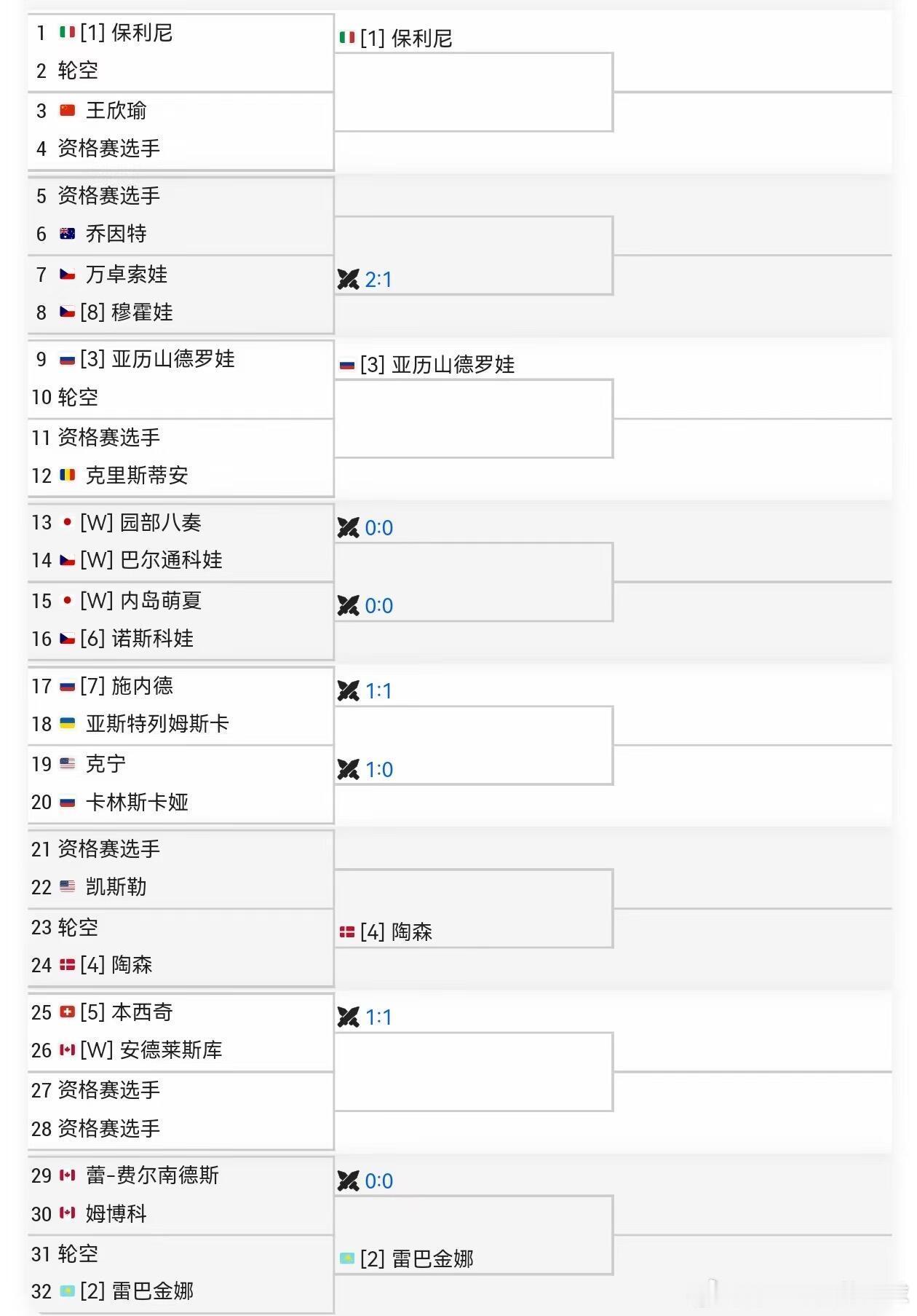 王欣瑜首轮对阵资格赛球员,如果能晋级,第二轮就要对阵头号种子保利尼;