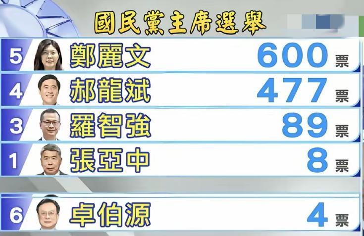 国民党改选几个令人惊讶的地方: 1、30万党员仅仅7万多人参与投票,投票率才百分之二十多。 2、原本预计郑丽文与郝龙斌难分伯仲,不到最后一刻不知胜负,然而开票伊始,郑丽文的得票数就“吊打”郝龙斌。 3、张亚中只得到1564票,这或说明他的票数可能被分流了。 4、赵少康选前频繁动作,竟然没能帮助郝龙斌获胜。