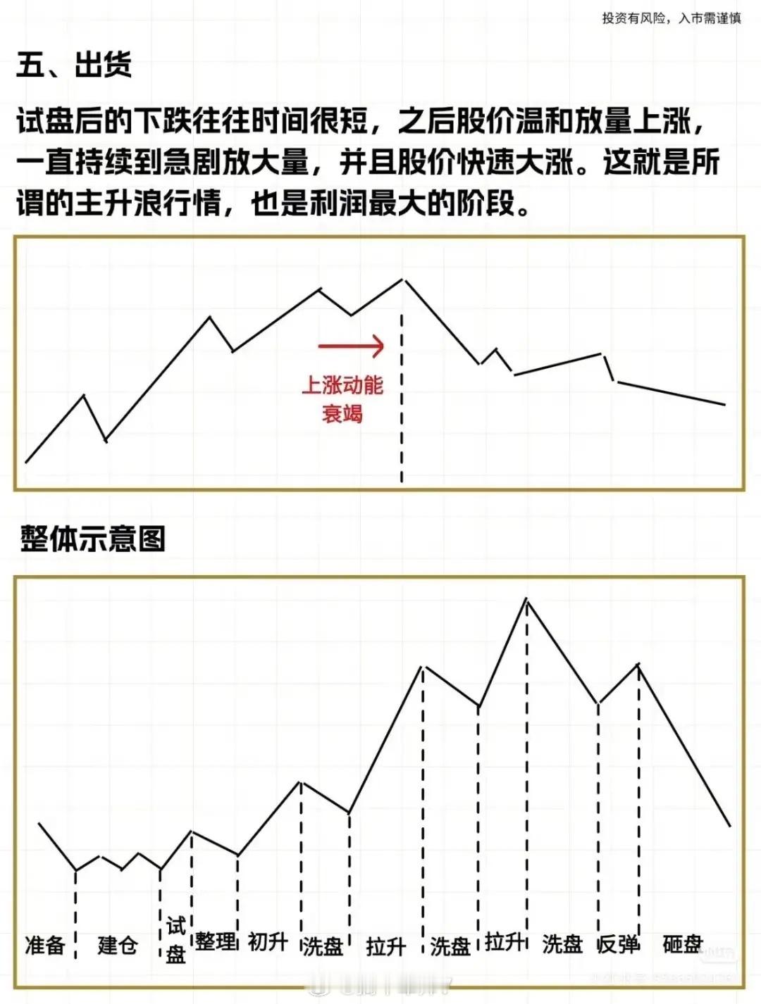 在股价大幅上涨、市场情绪高涨时,庄家开始逐步抛售手中筹码,完成出货。虽然拉升后期动能依然强劲,但庄家会在“上涨动能衰竭”前悄然减仓,将股票转手给追高的散户,从而实现盈利退出。此阶段股价可能仍会上涨,但已是庄家逐步撤退的过程。